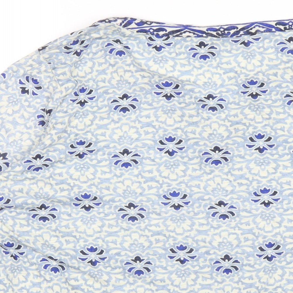 Orvis Womens Blue Geometric Cotton Basic T-Shirt Size XL V-Neck