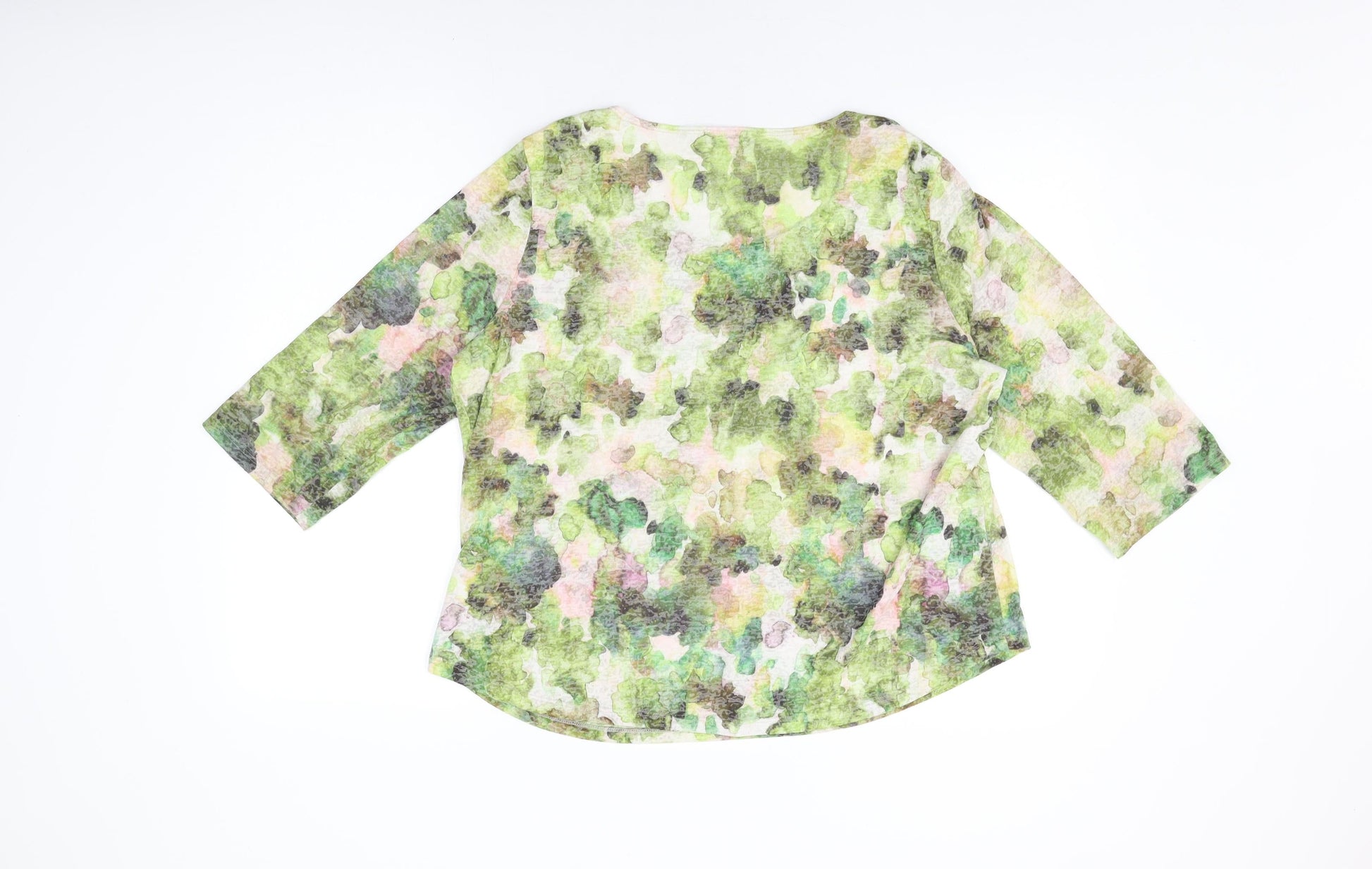 Orvis Womens Green Geometric Cotton Basic T-Shirt Size XL Round Neck
