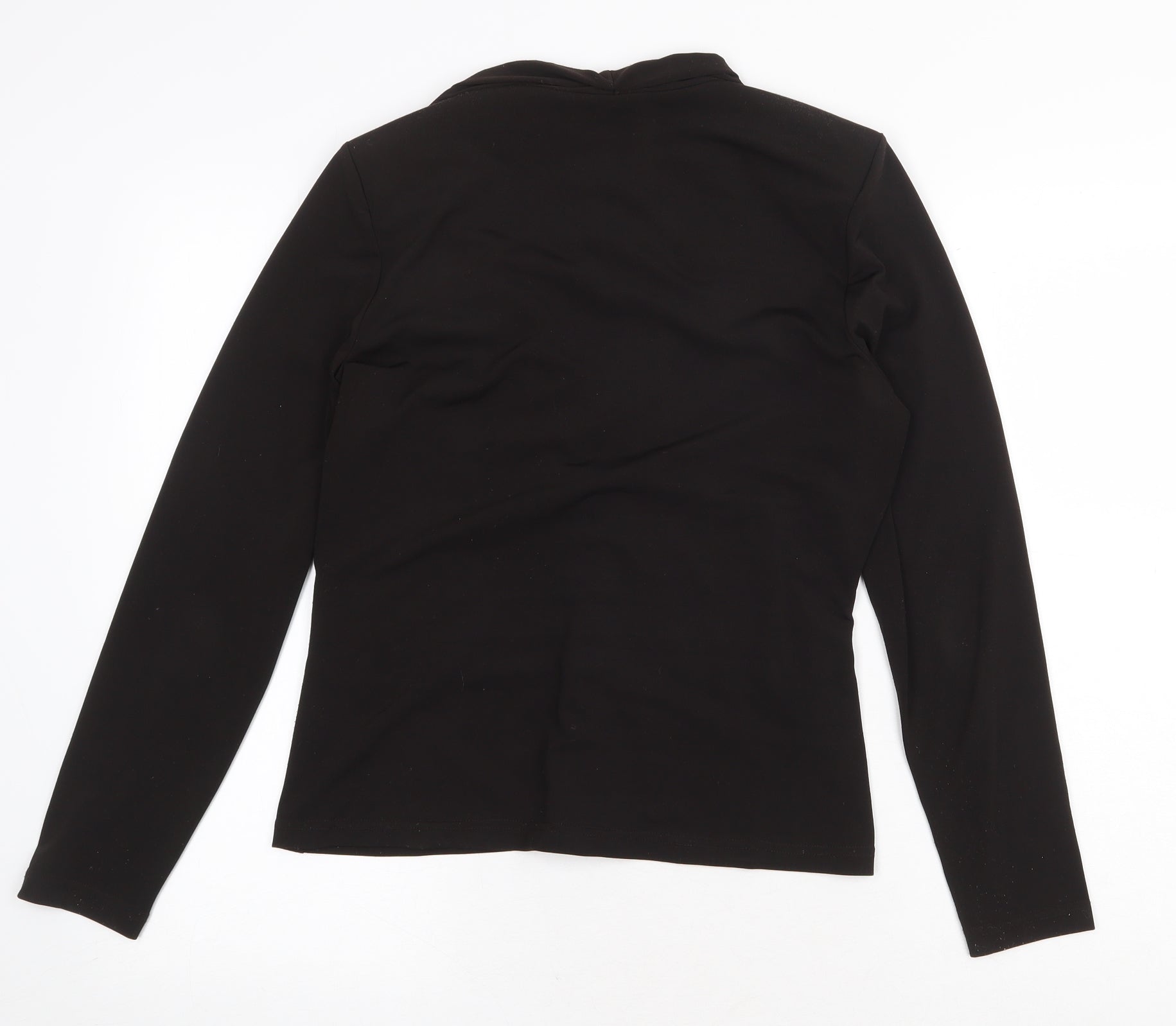 Oscar B Womens Black Polyester Basic Blouse Size 14 V-Neck