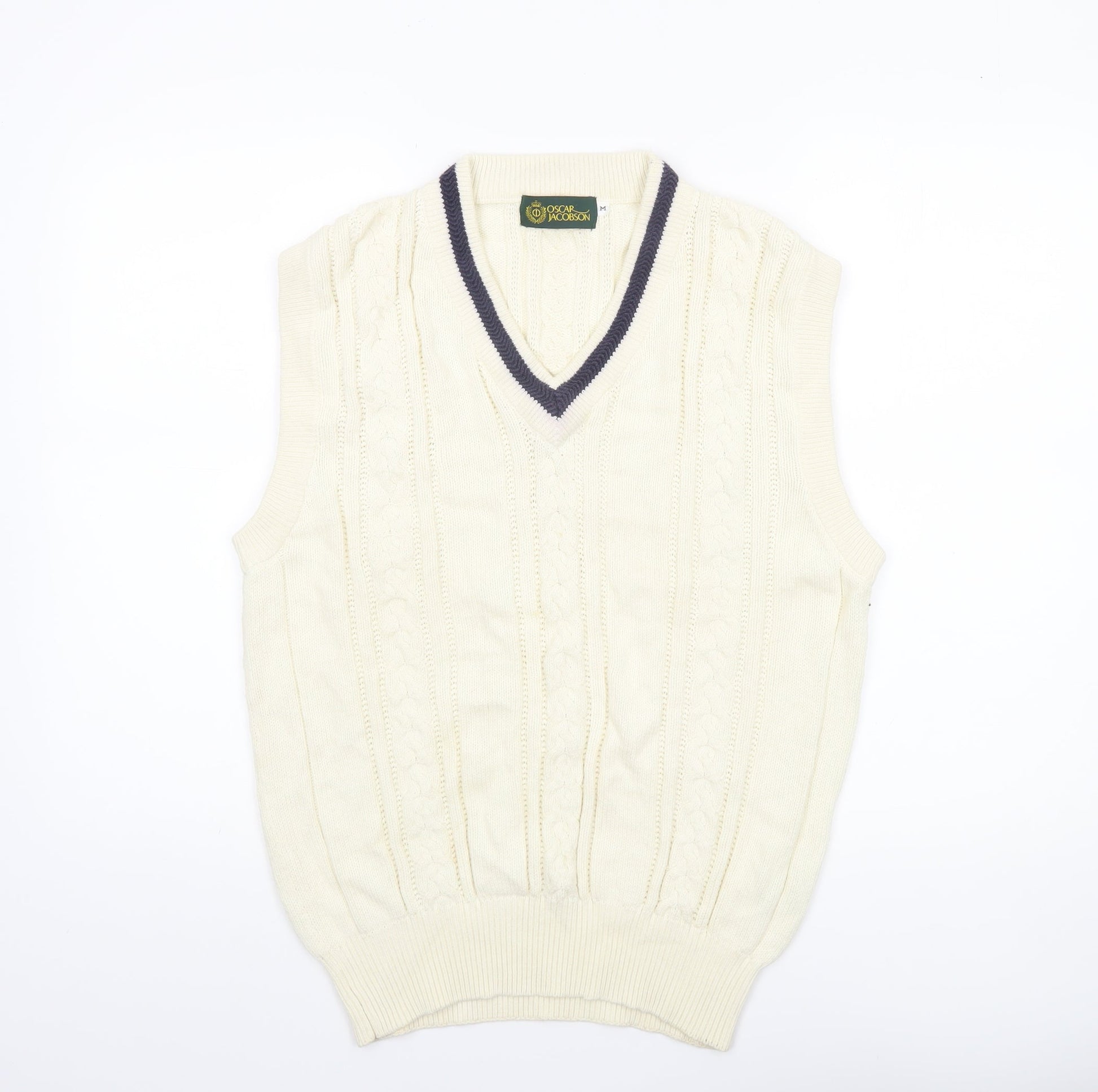 Oscar Jacobson Men's Ivory Cable-Knit Cotton Golf Vest M