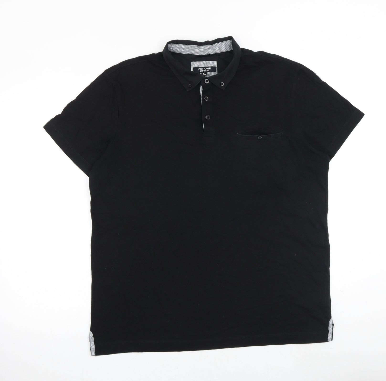 Outrage London Mens Black 100% Cotton Polo Size XL Collared Button