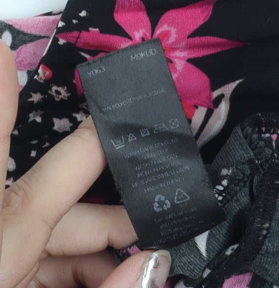Papaya Women’s Black Floral Ruffle Blouse Size 16 Long Sleeve