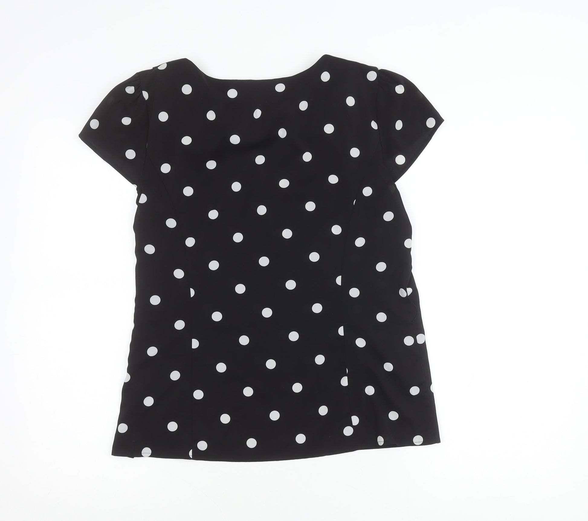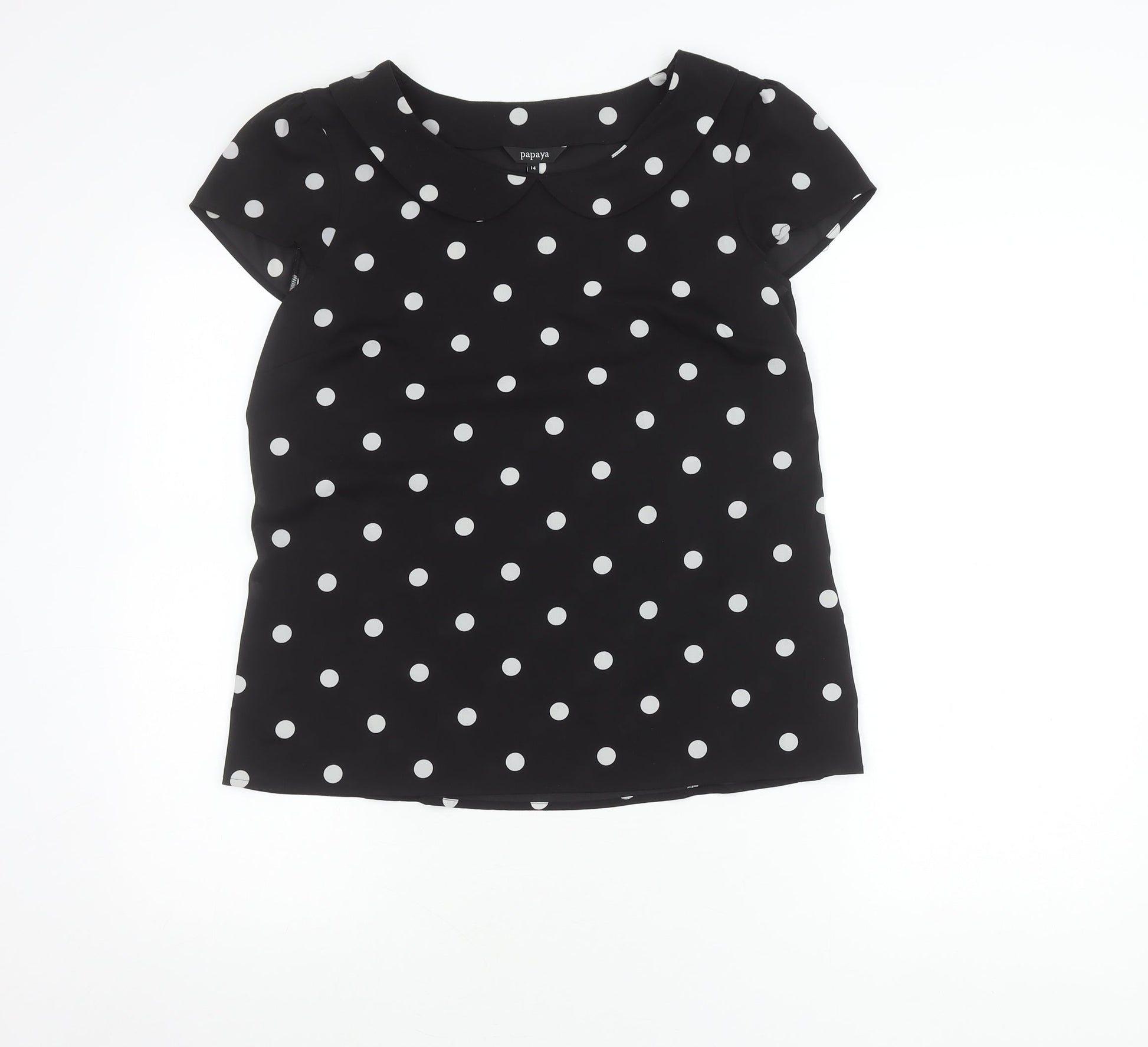 Papaya Women’s Black Polka Dot Chiffon Blouse Size 14 Cap Sleeve