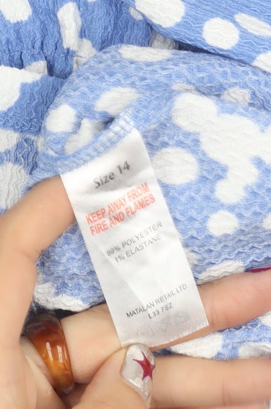 Papaya Women’s Blue Polka Dot Cropped Blouse Size 14 Puff Sleeve