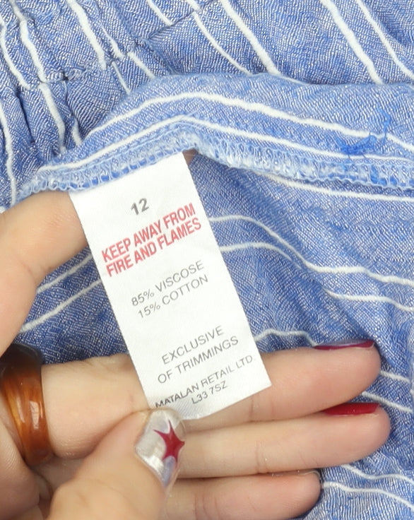Papaya Women’s Blue Striped Off Shoulder Puff Sleeve Peasant Blouse Size 12