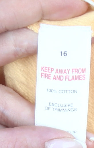Papaya Women Yellow Size 16 Cotton Crochet Sleeve T-Shirt Top