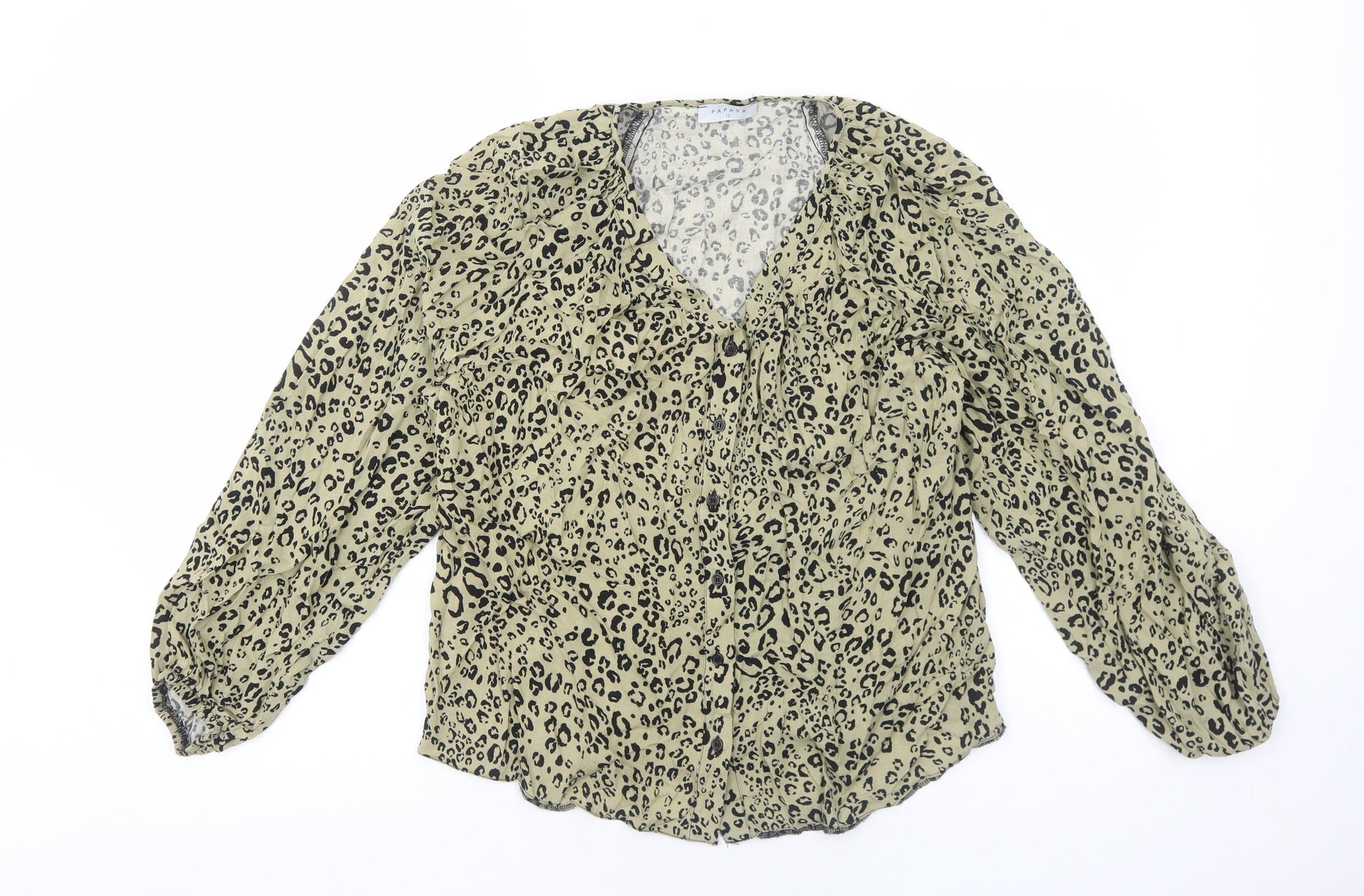 Papaya Womens Beige Animal Print Viscose Basic Blouse Size 12 V-Neck - Leopard Print