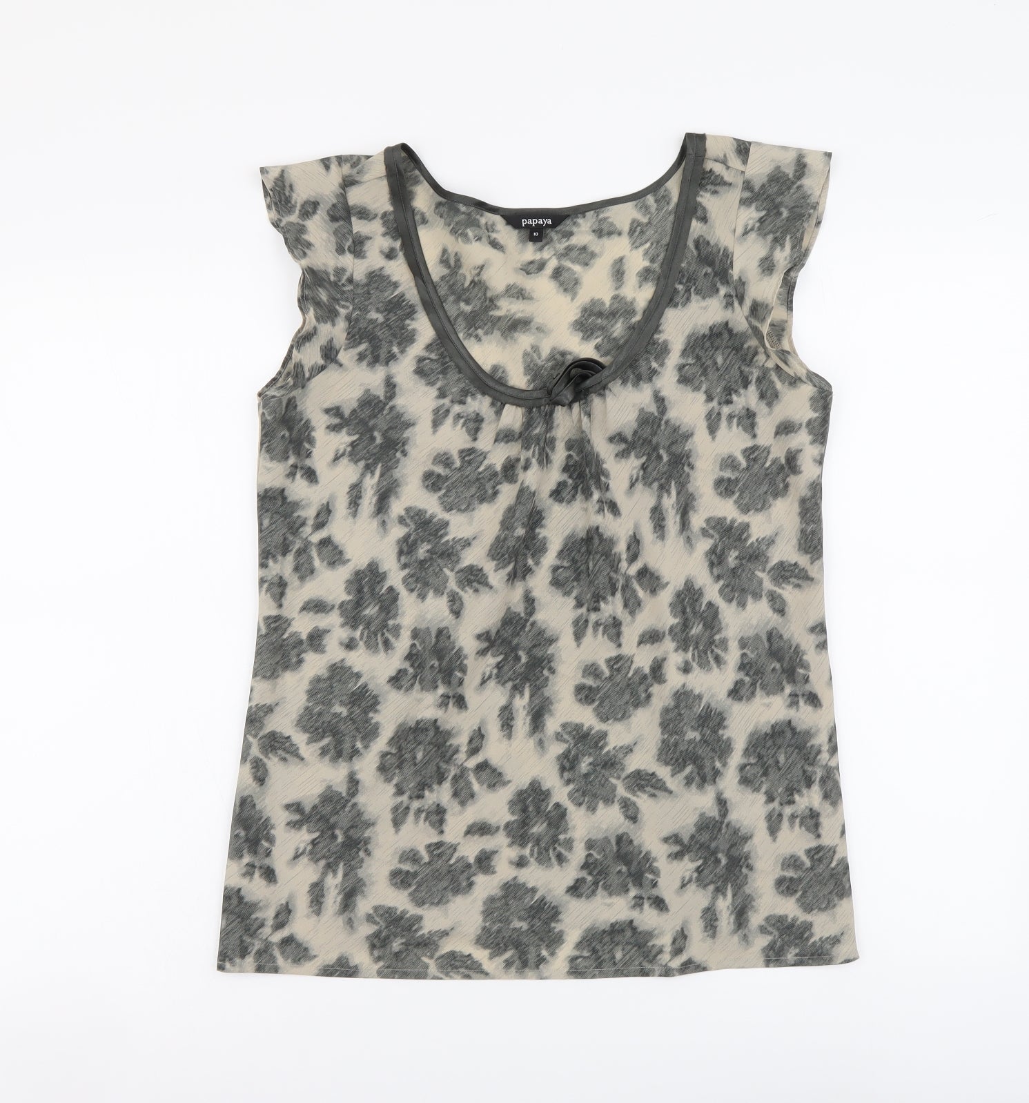 Papaya Womens Beige Floral Polyester Basic Blouse Size 10 Scoop Neck