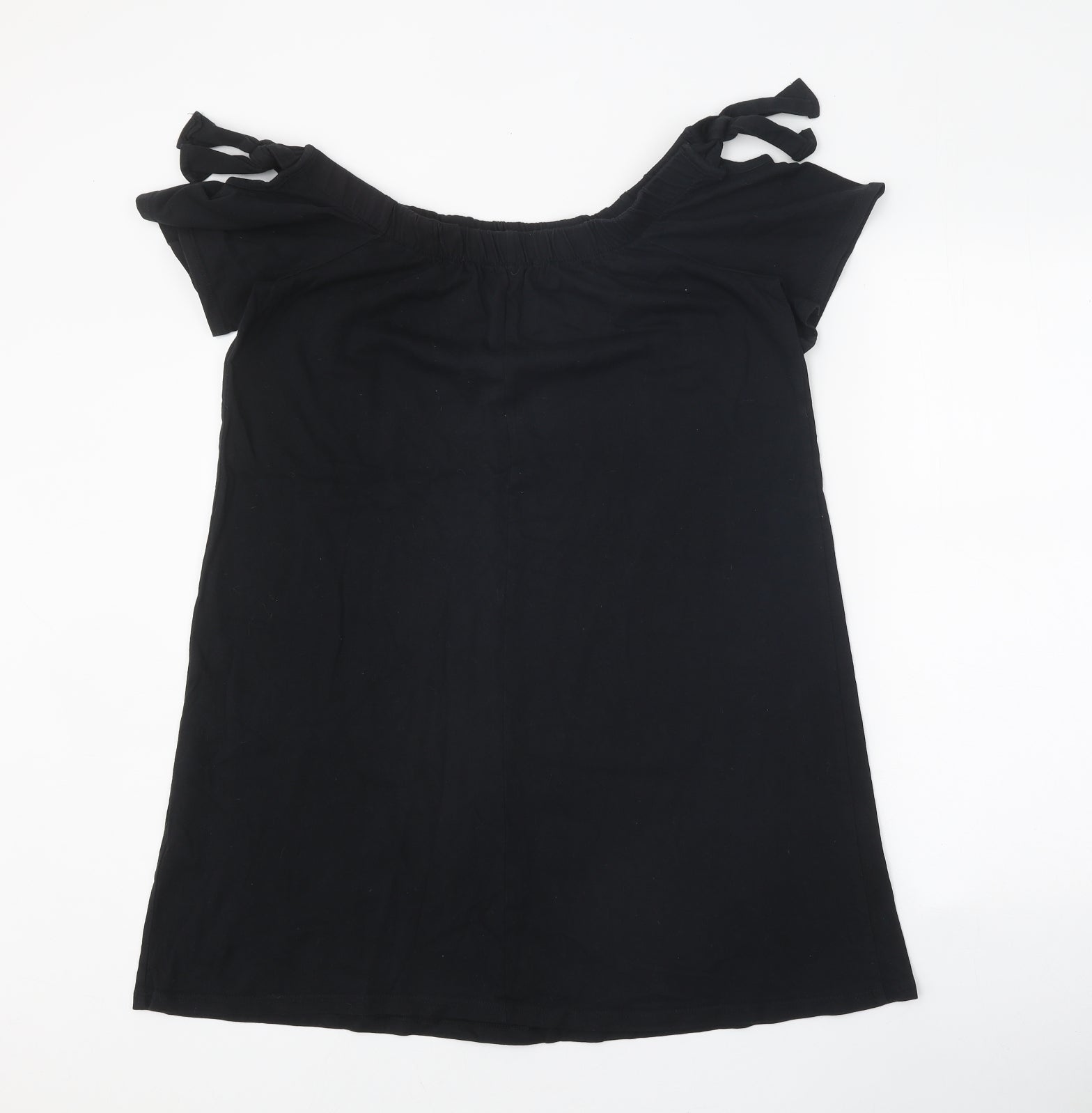 Papaya Womens Black 100% Cotton Basic Blouse Size M Boat Neck