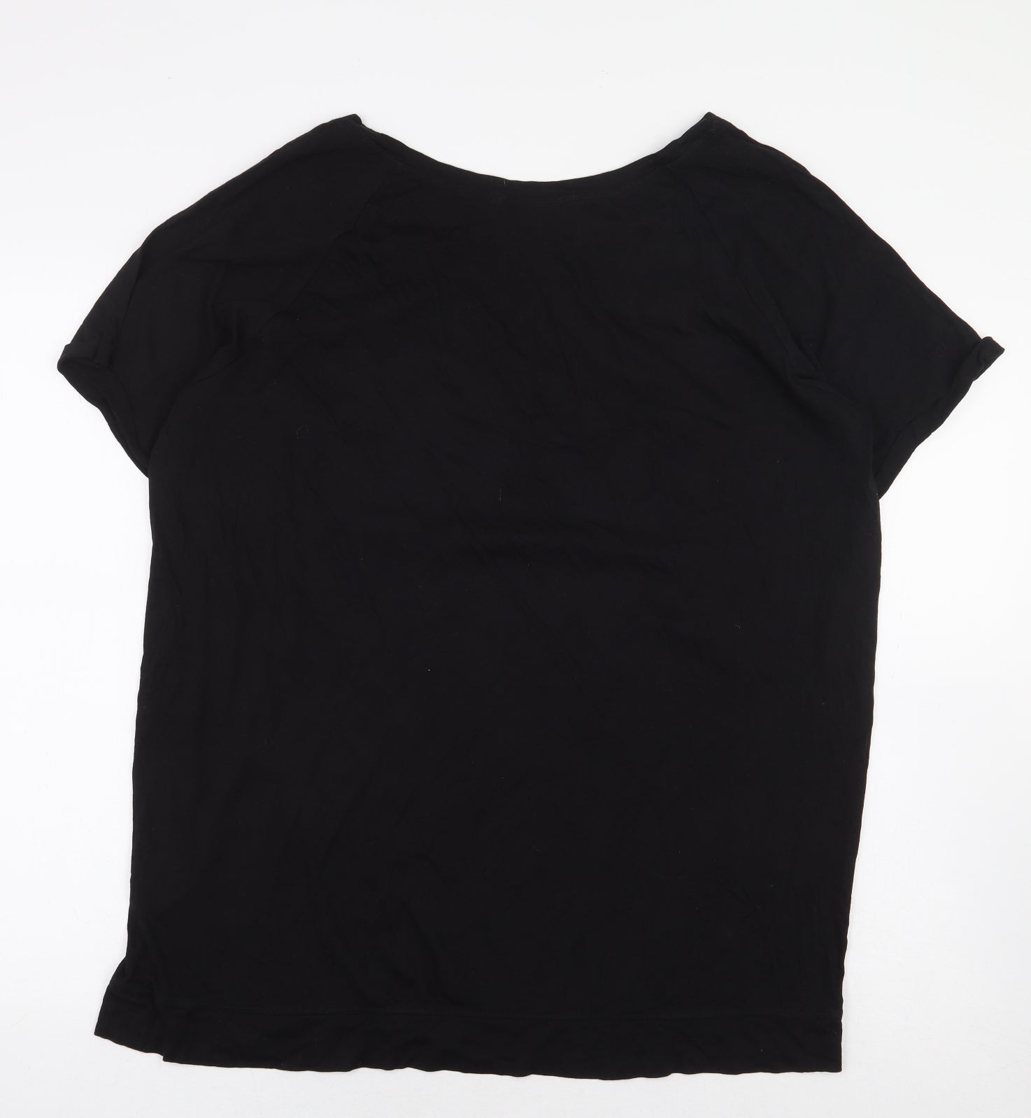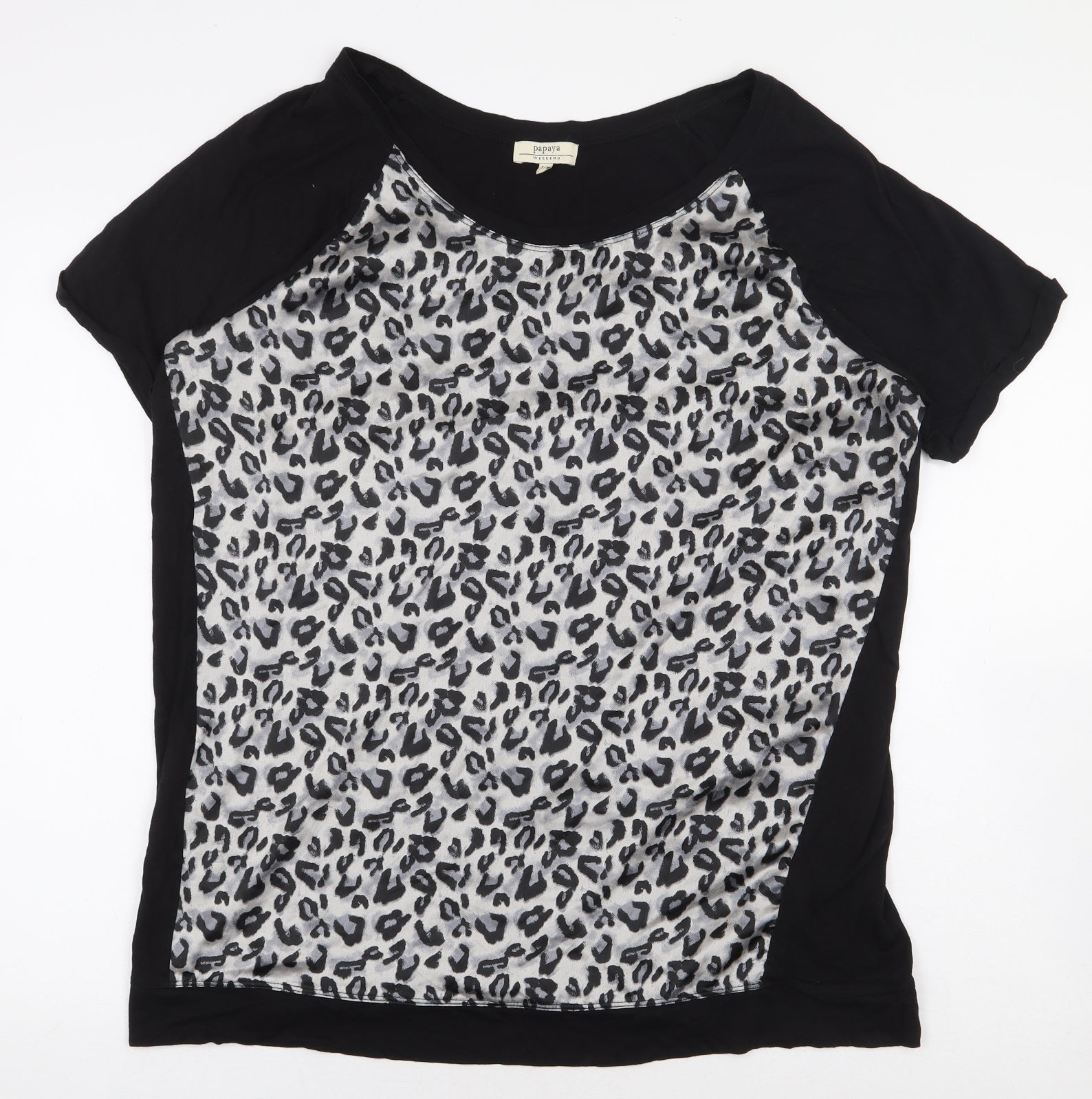 Papaya Womens Black Animal Print Polyester Basic Blouse Size 16 Boat Neck - Leopard Print