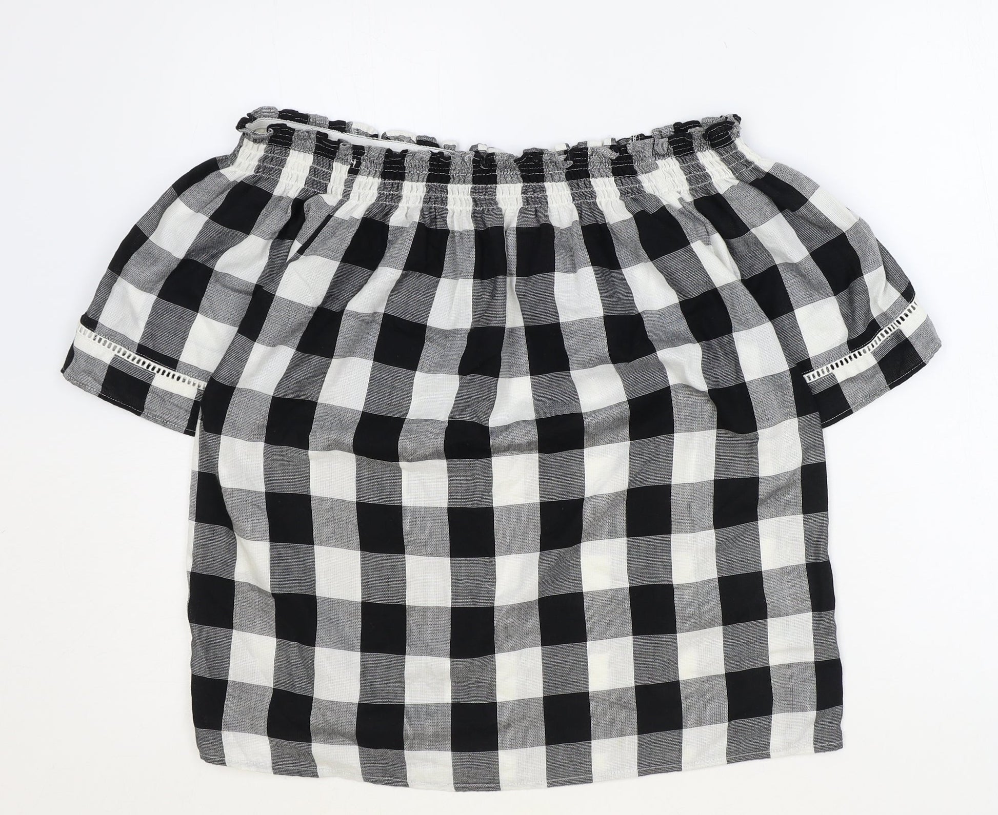 Papaya Womens Black Check Polyester Basic Blouse Size 10 Boat Neck