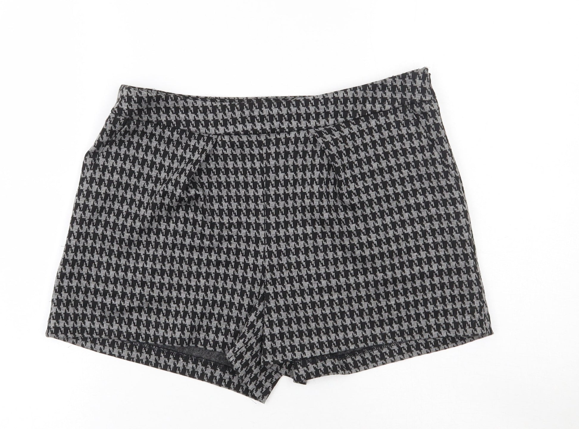 Papaya Womens Black Check Polyester Hot Pants Shorts Size 8 Regular Zip
