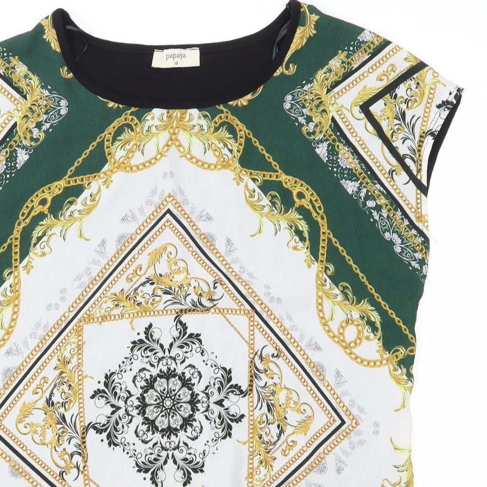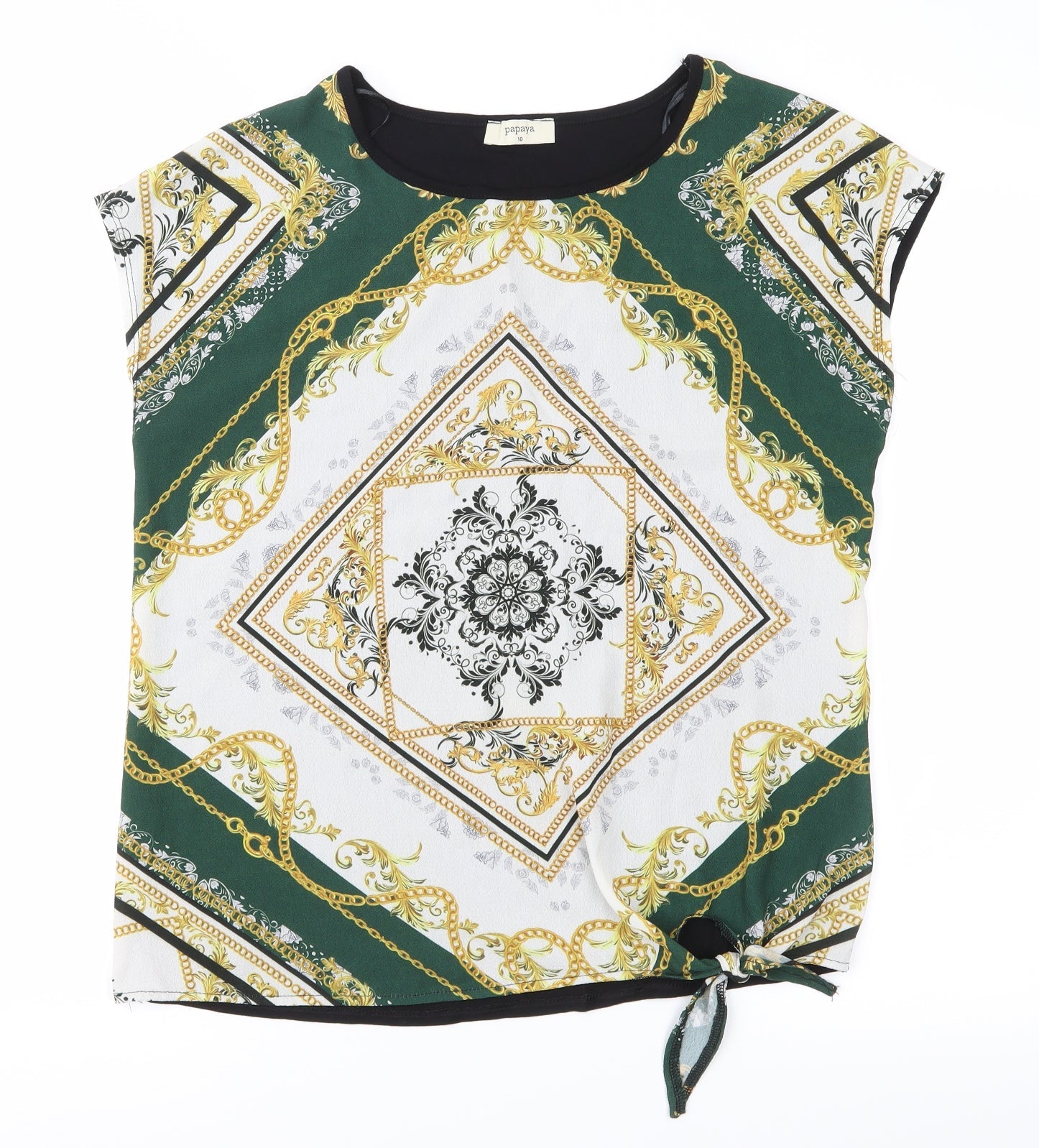 Papaya Womens Black Colourblock Basic T-Shirt Size 10