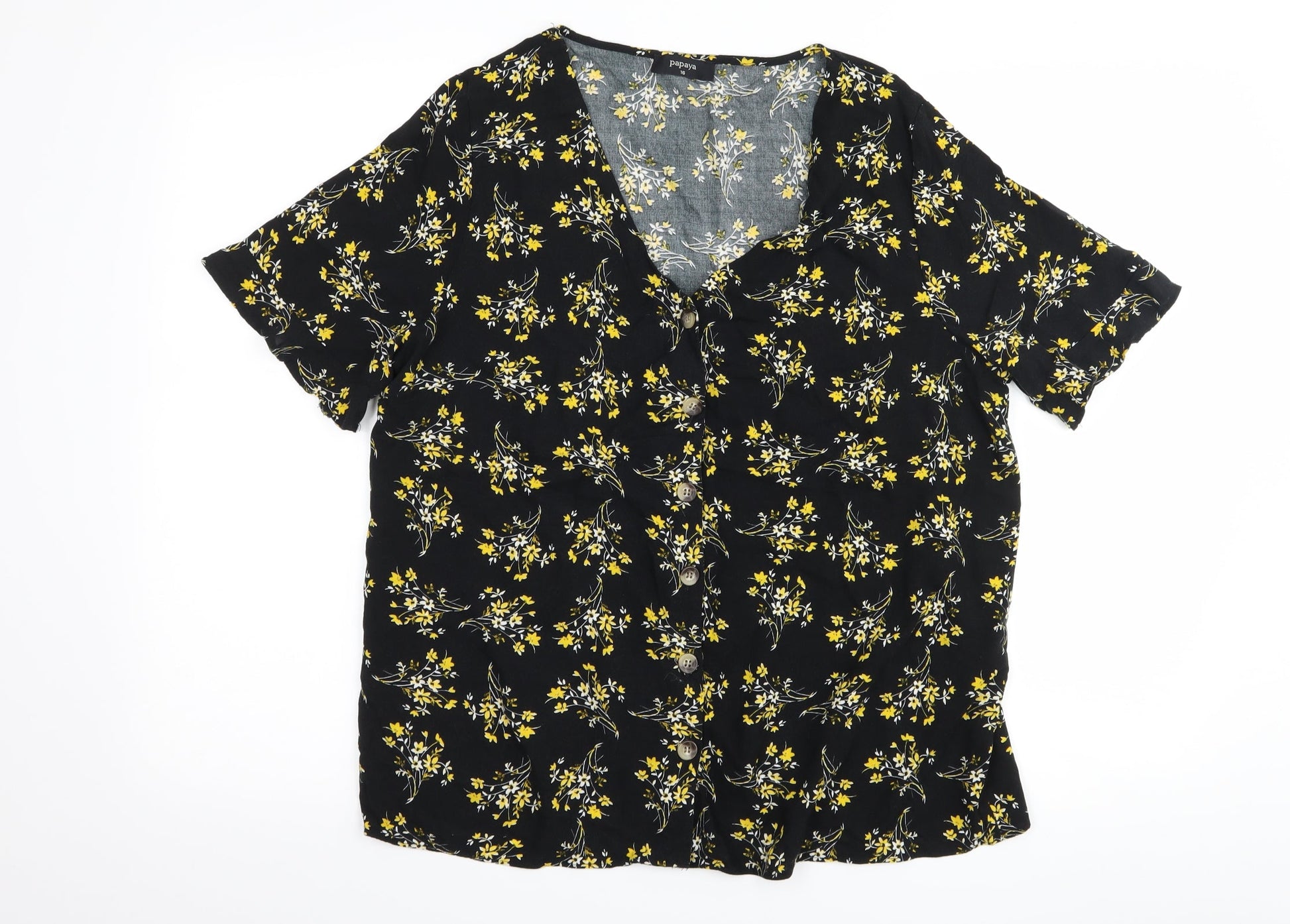 Papaya Womens Black Floral Basic Button-Up Size 16