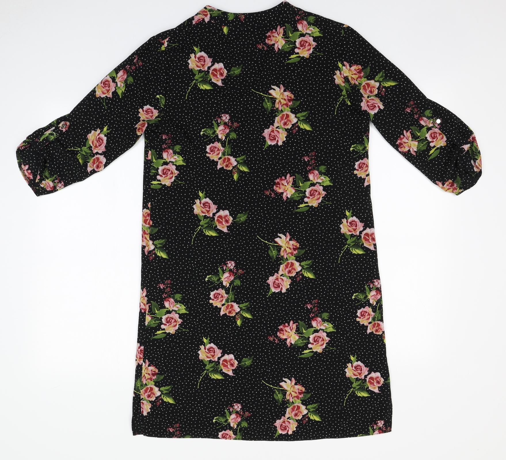 Papaya Womens Black Floral Polyester A-Line Size 8 Round Neck