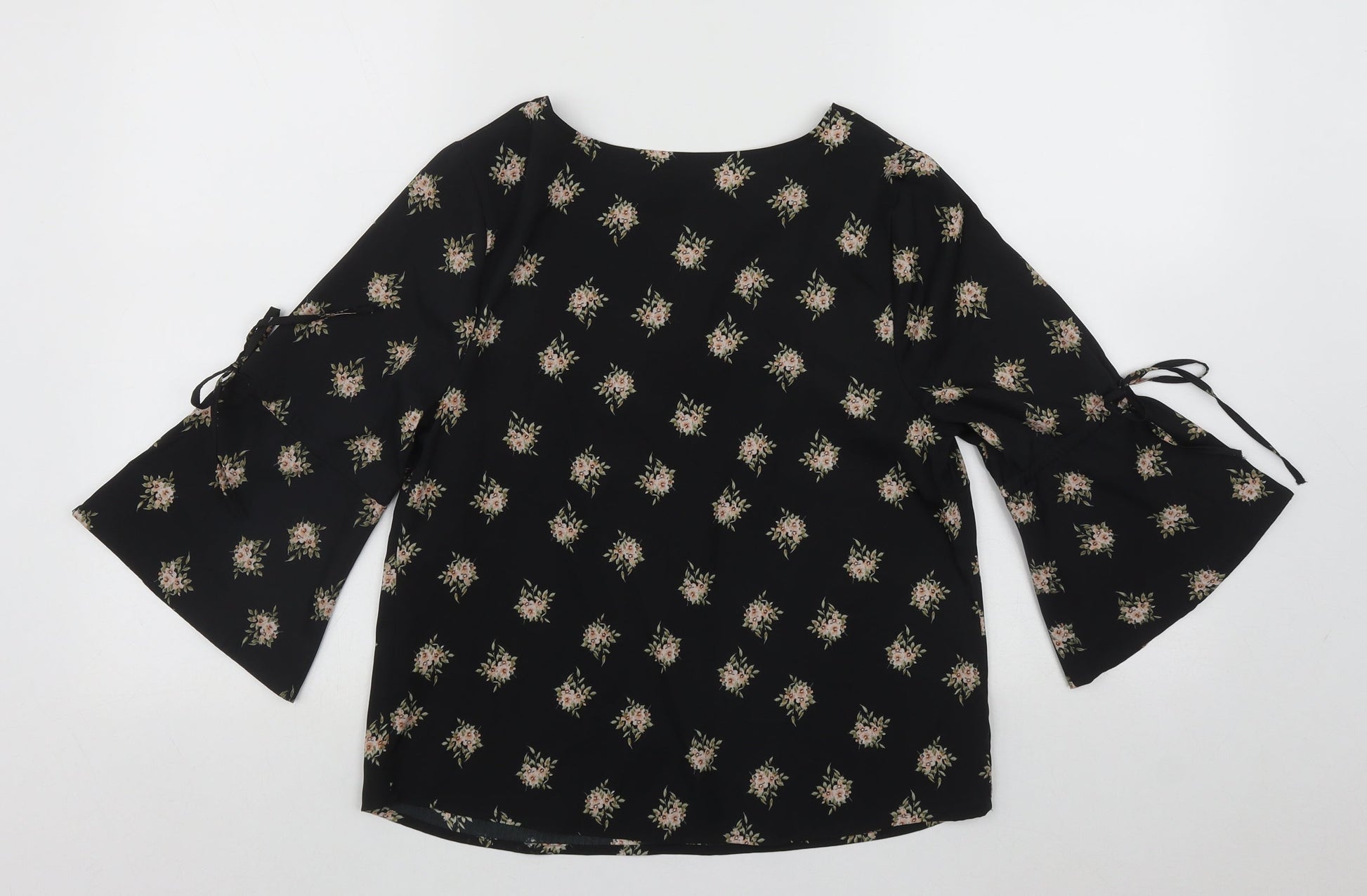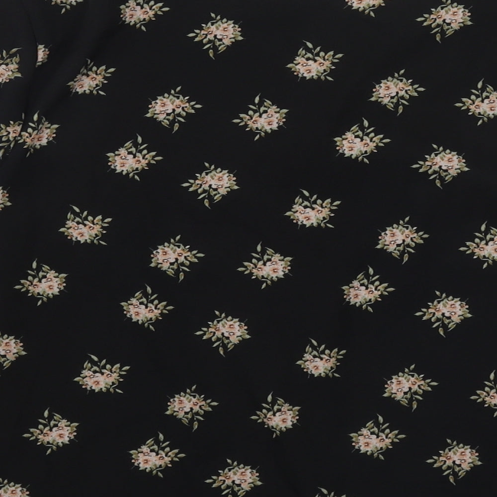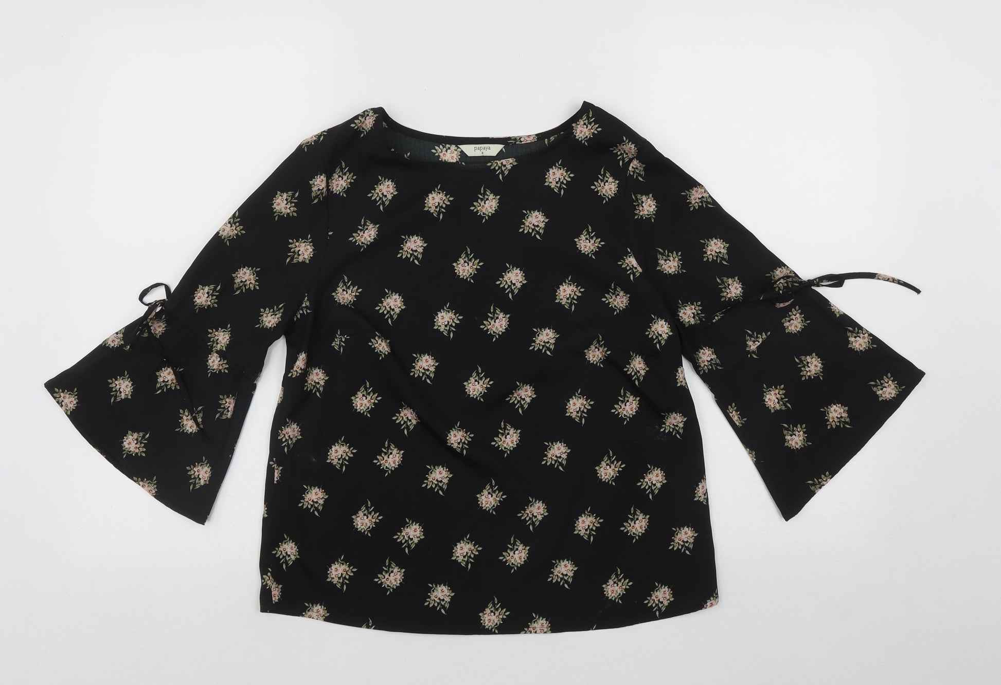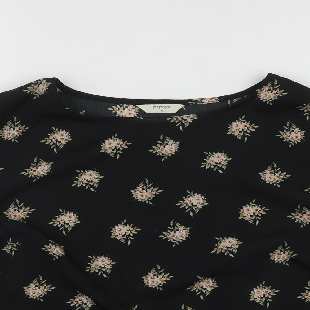 Papaya Womens Black Floral Polyester Basic Blouse Size 8 Round Neck