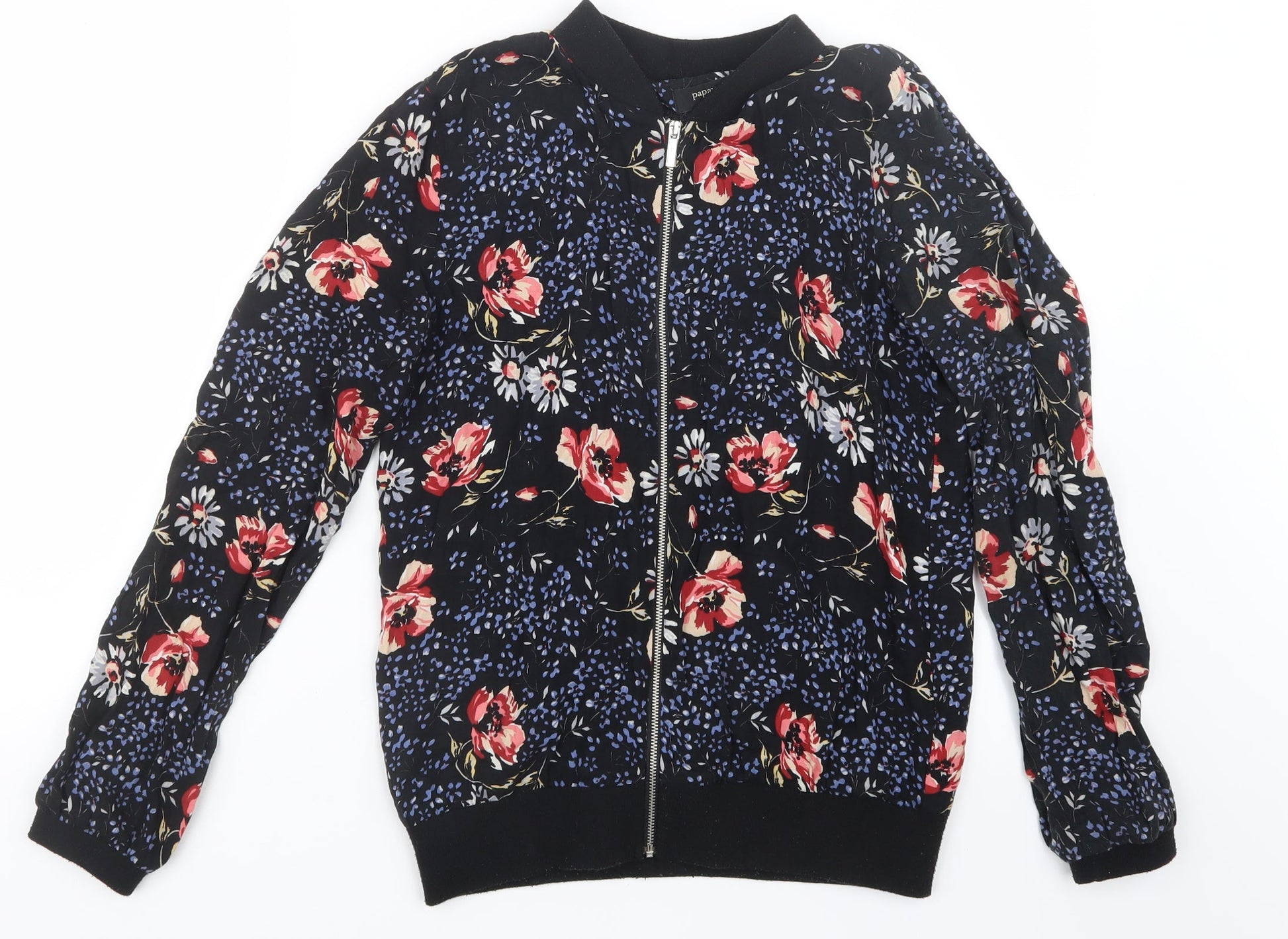 Papaya Womens Black Geometric Bomber Jacket Jacket Size 10