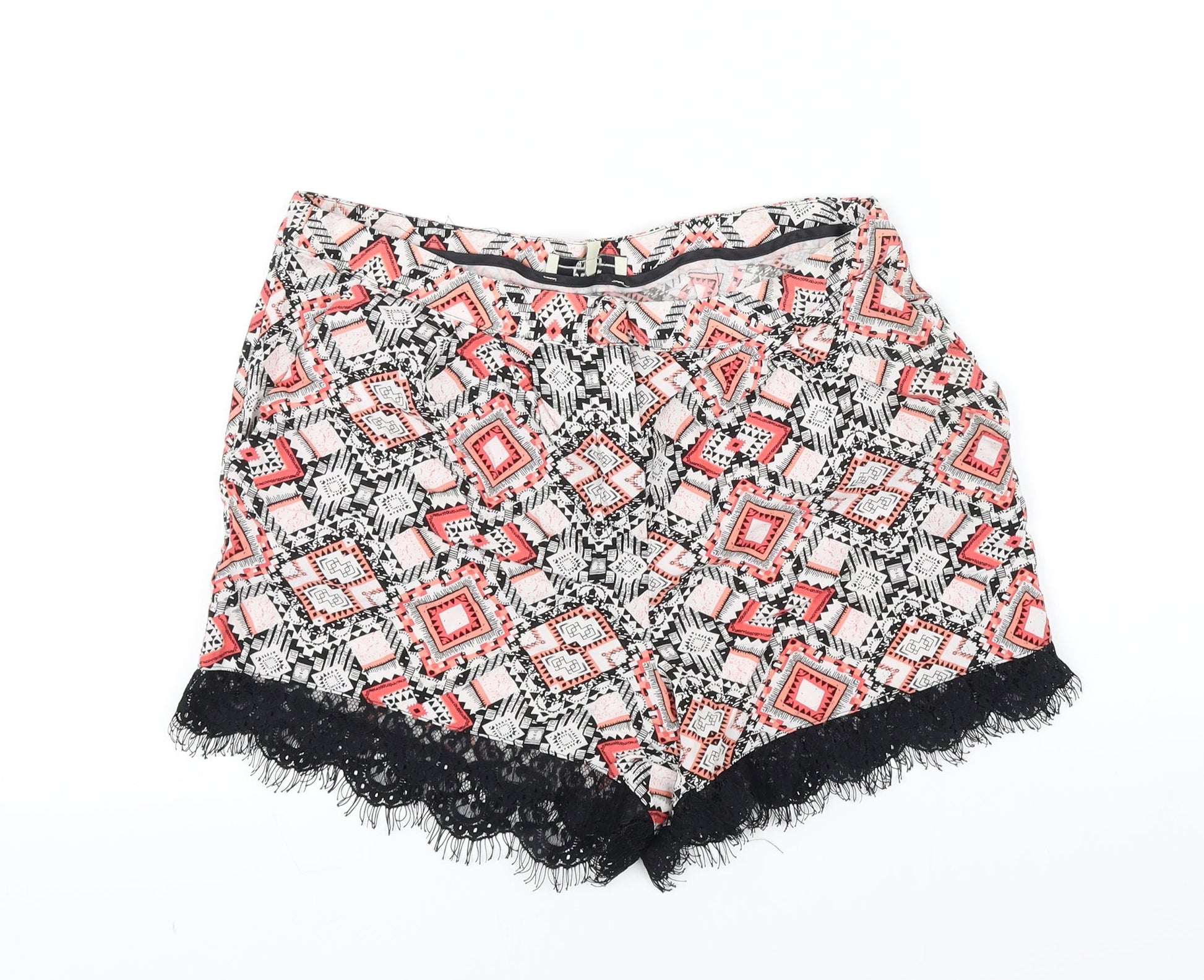 Papaya Womens Black Geometric Cut-Off Shorts Size 10