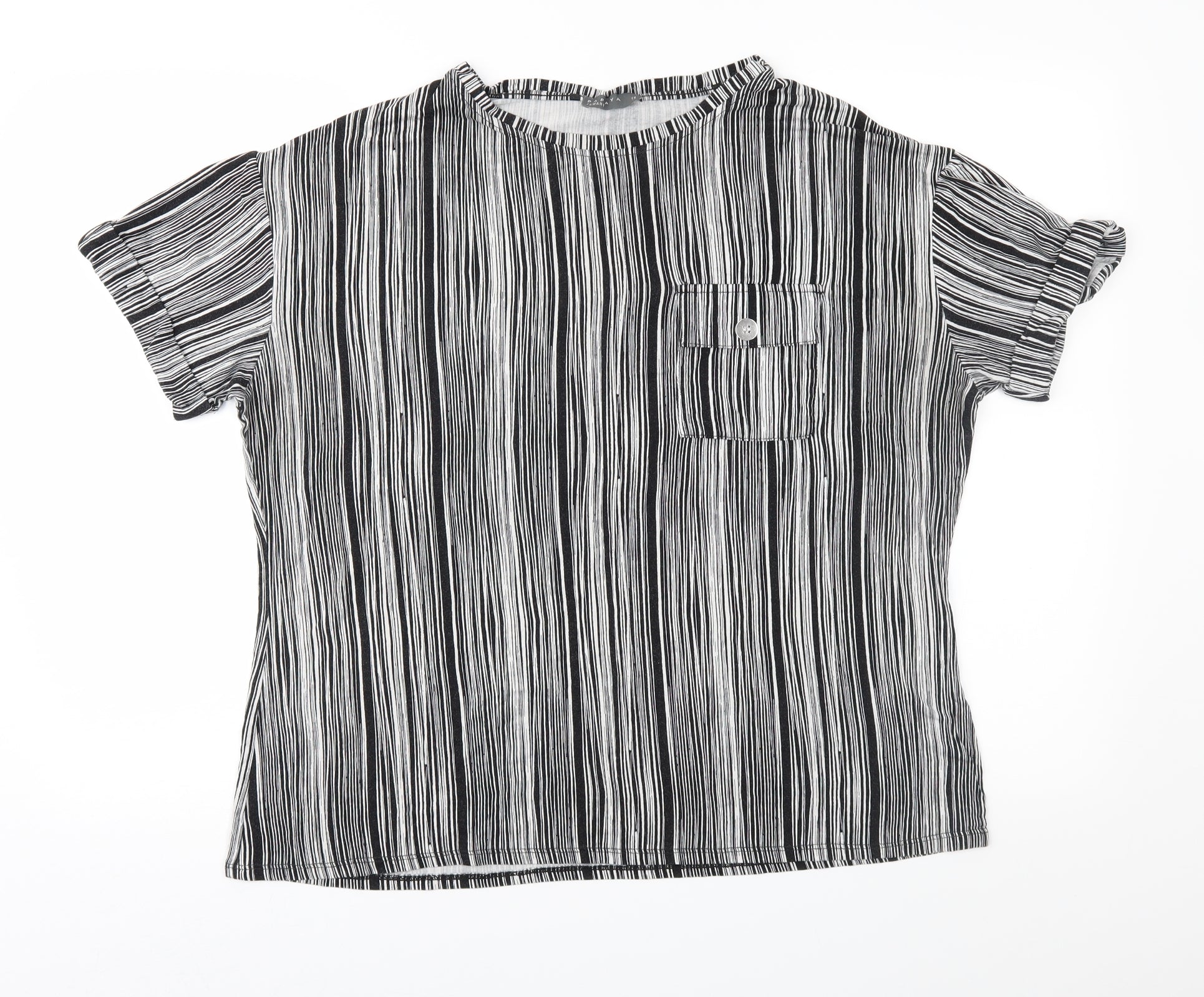 Papaya Womens Black Geometric Jersey Basic T-Shirt Size 16