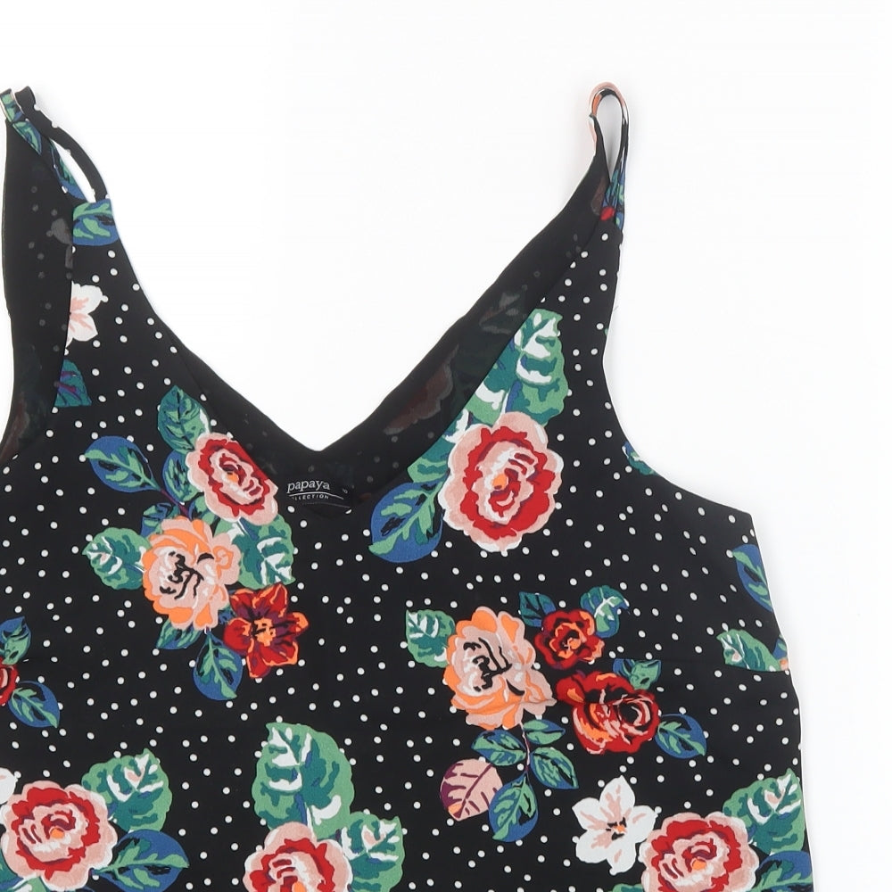 Papaya Womens Black Geometric Mesh Basic Blouse Size 10