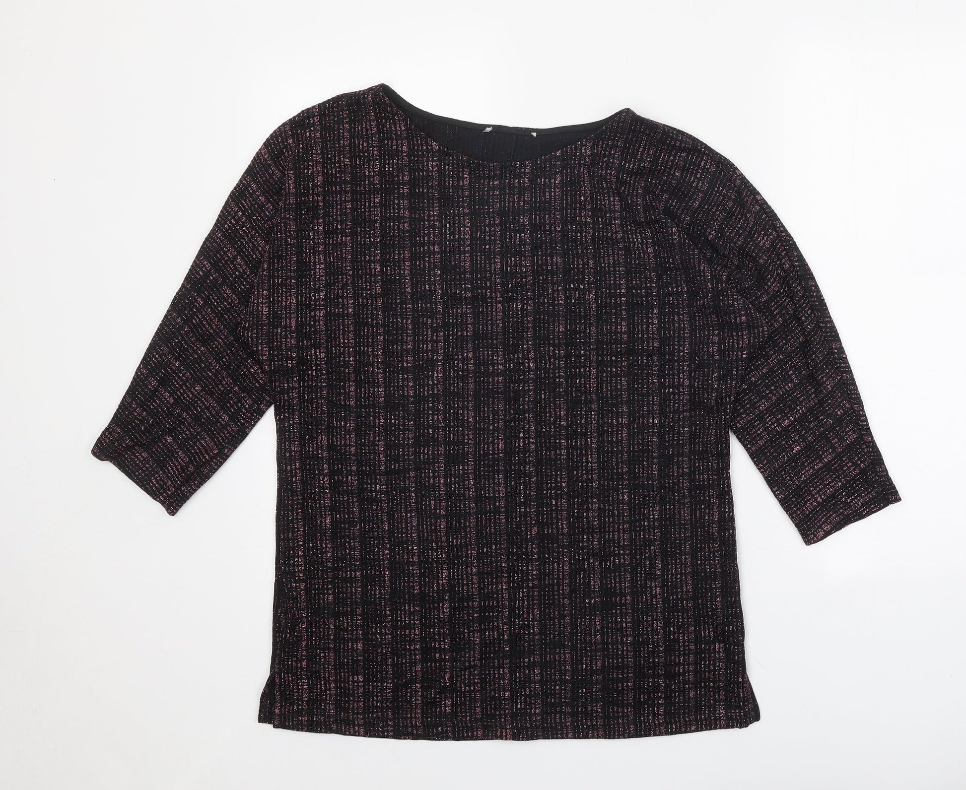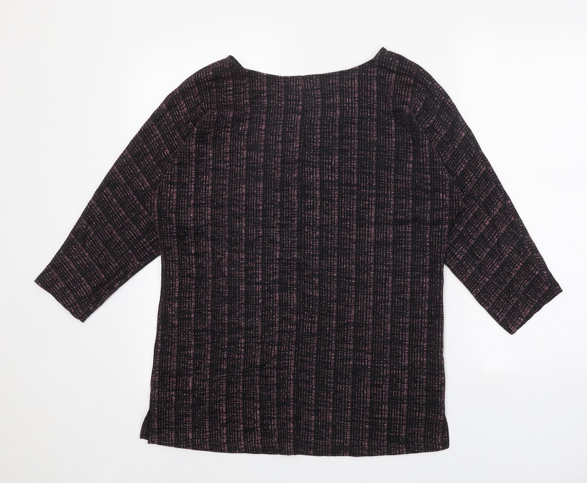 Papaya Womens Black Geometric Polyamide Basic Blouse Size 12 Boat Neck