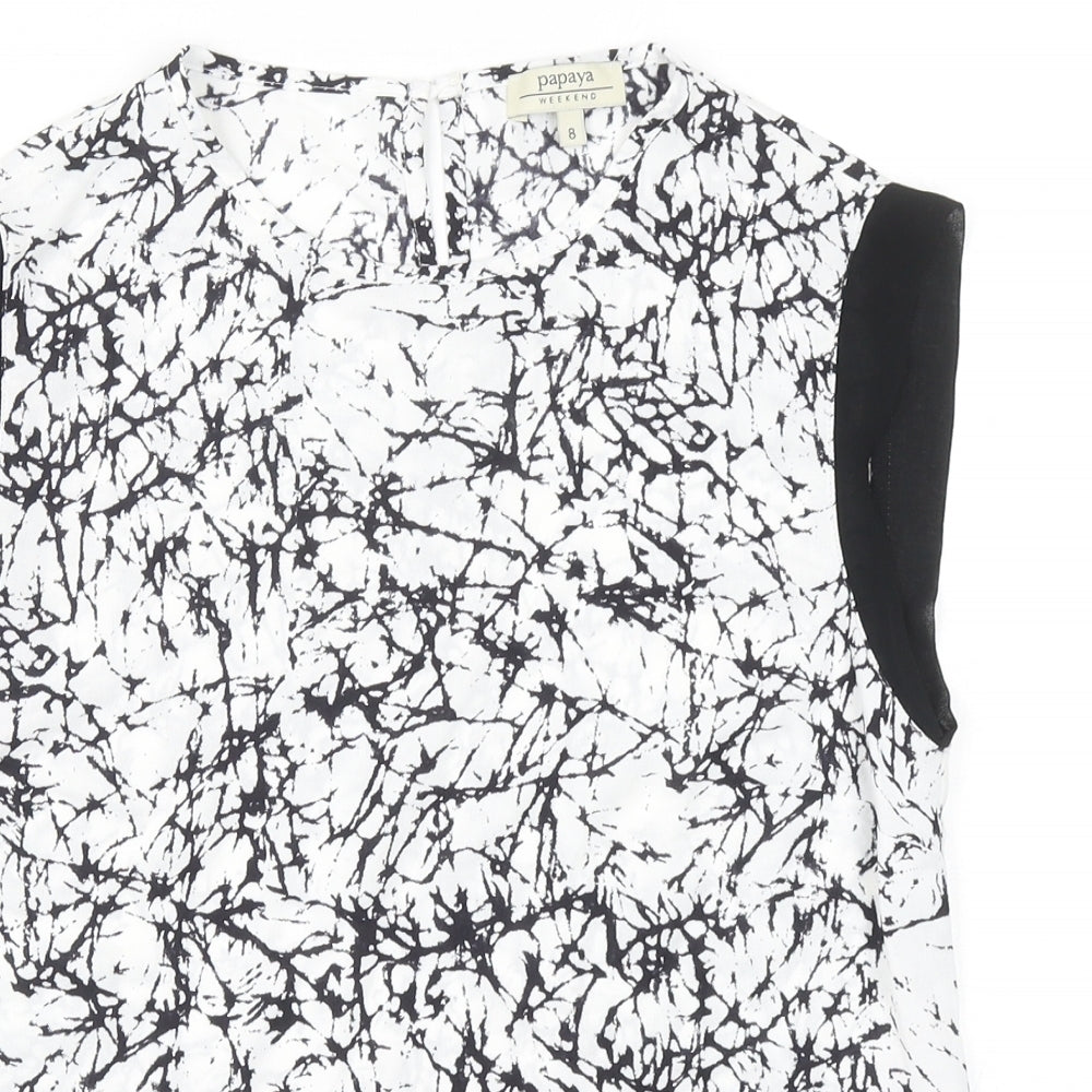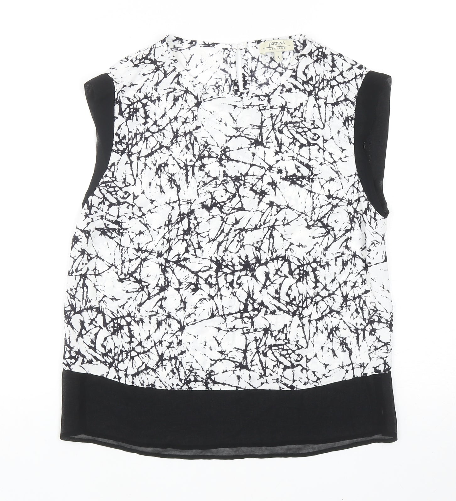 Papaya Womens Black Geometric Polyester Basic Blouse Size 8 Boat Neck