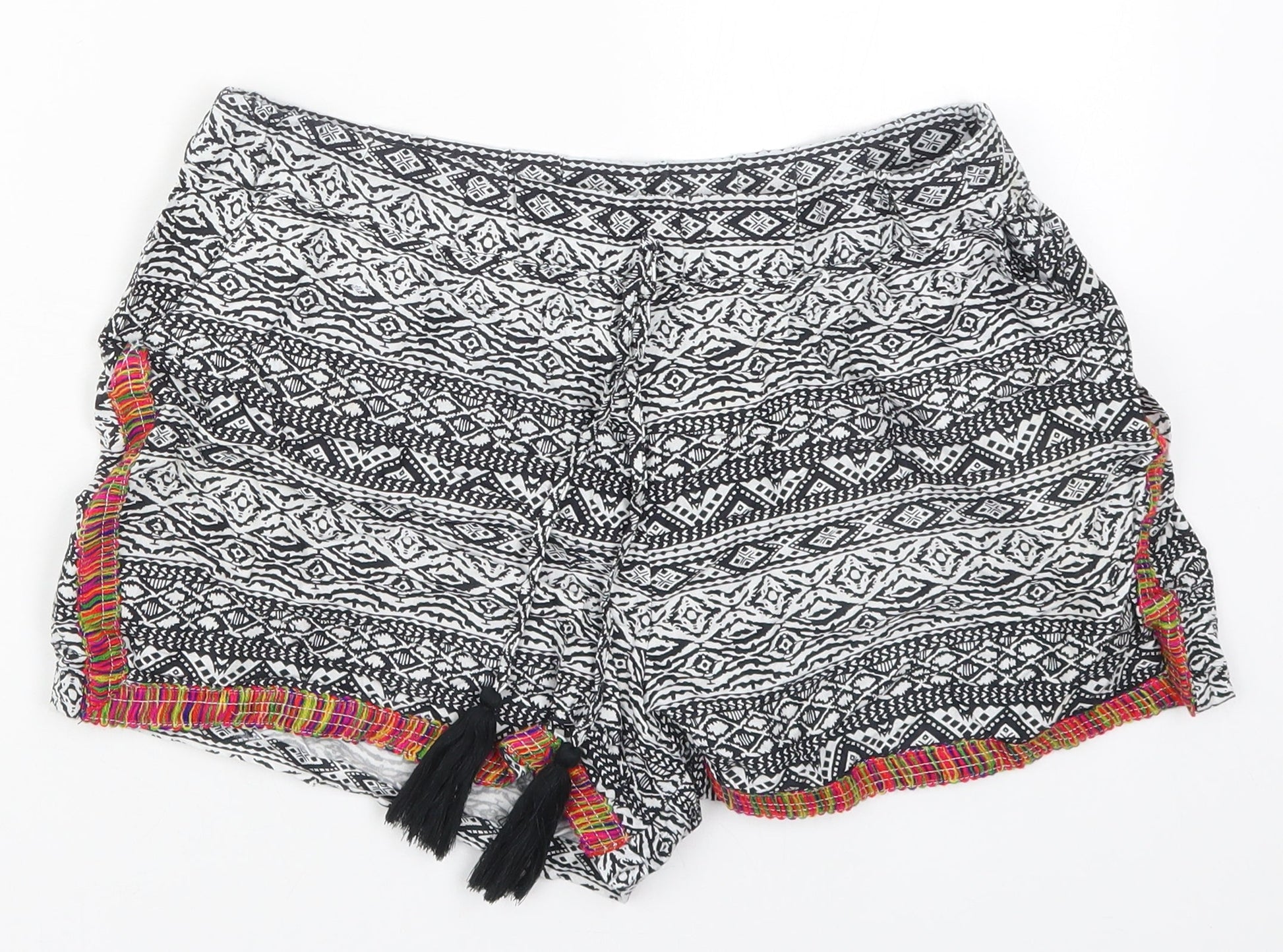 Papaya Womens Black Geometric Viscose Mom Shorts Size 10 L3 in Regular Drawstring