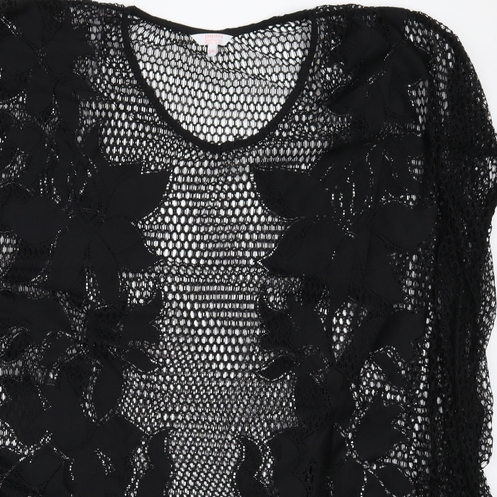 Papaya Womens Black Knit T-Shirt Dress Size S - Open Knit Beach Cover Up