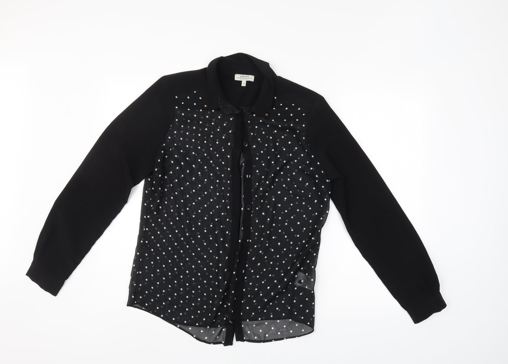 Papaya Womens Black Polka Dot Basic Button-Up Size 12