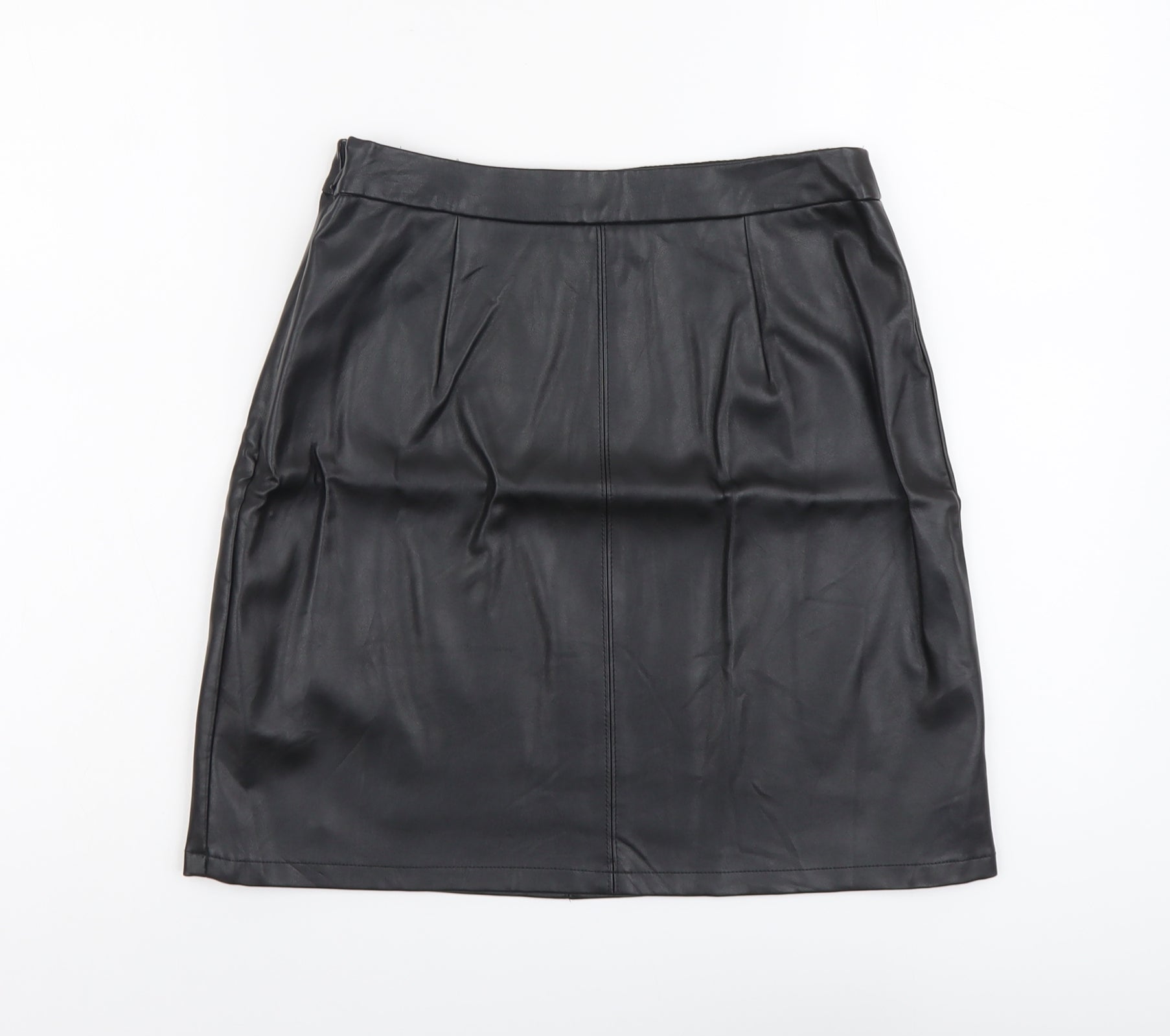 Papaya Womens Black Polyester A-Line Skirt Size 10 Zip
