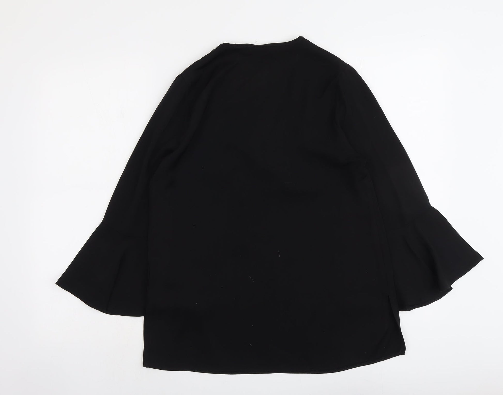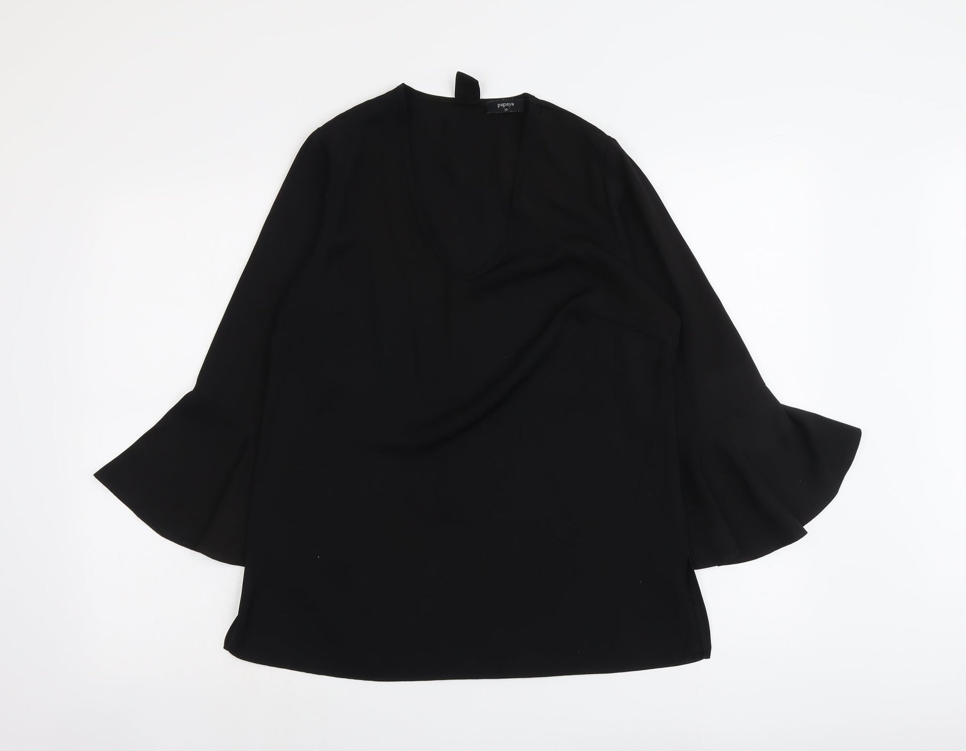 Papaya Womens Black Polyester Basic Blouse Size 10 Round Neck