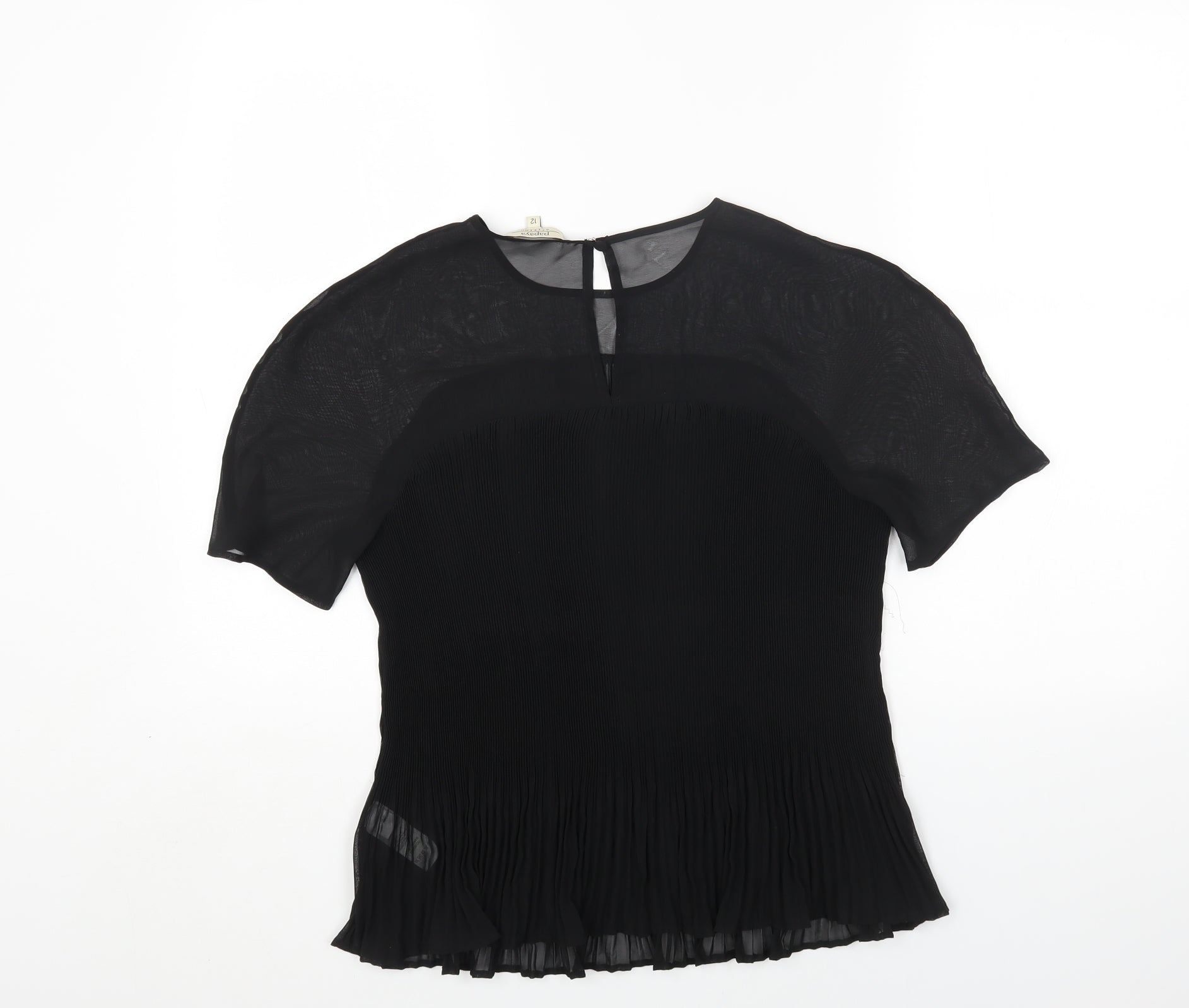 Papaya Womens Black Polyester Basic Blouse Size 12 Round Neck