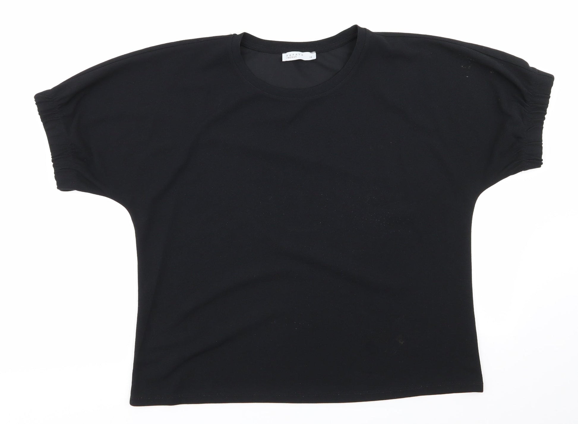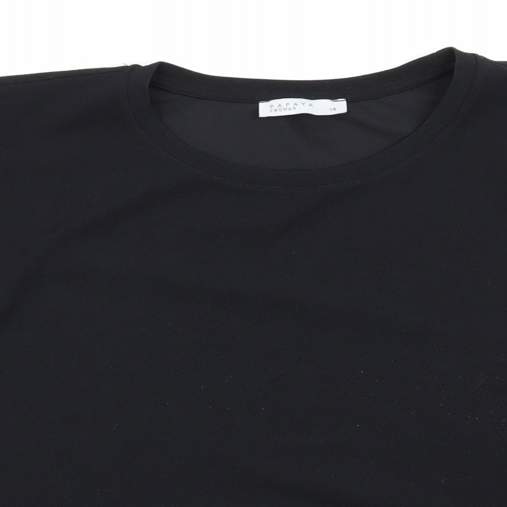 Papaya Womens Black Polyester Basic Blouse Size 14 Round Neck - Elasticated Sleeves