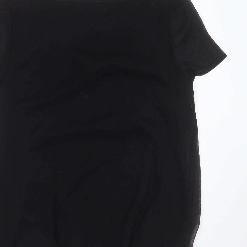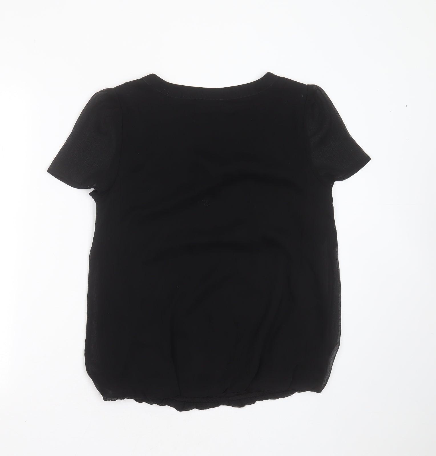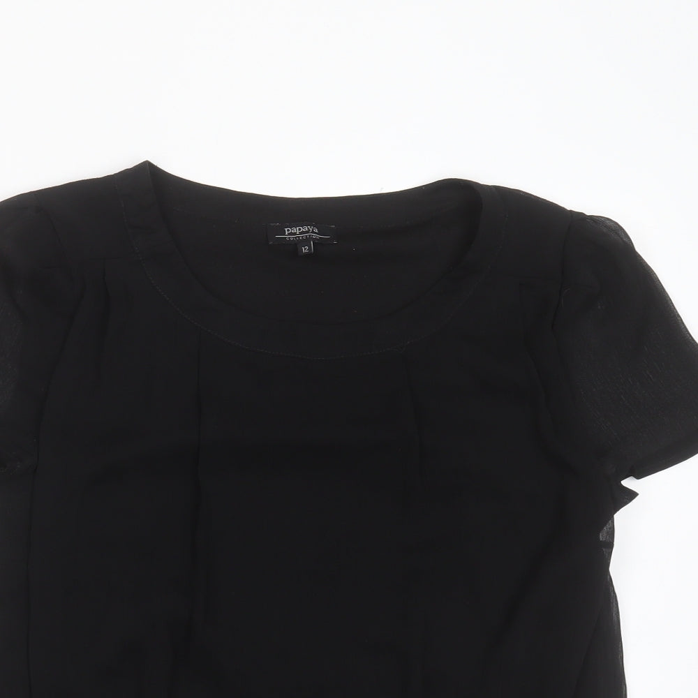 Papaya Womens Black Polyester Blend Basic Blouse Size 12 Round Neck