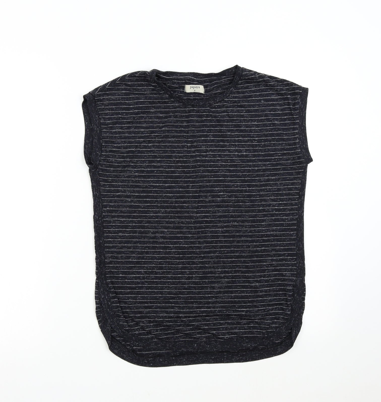 Papaya Womens Black Striped Basic T-Shirt Size 8