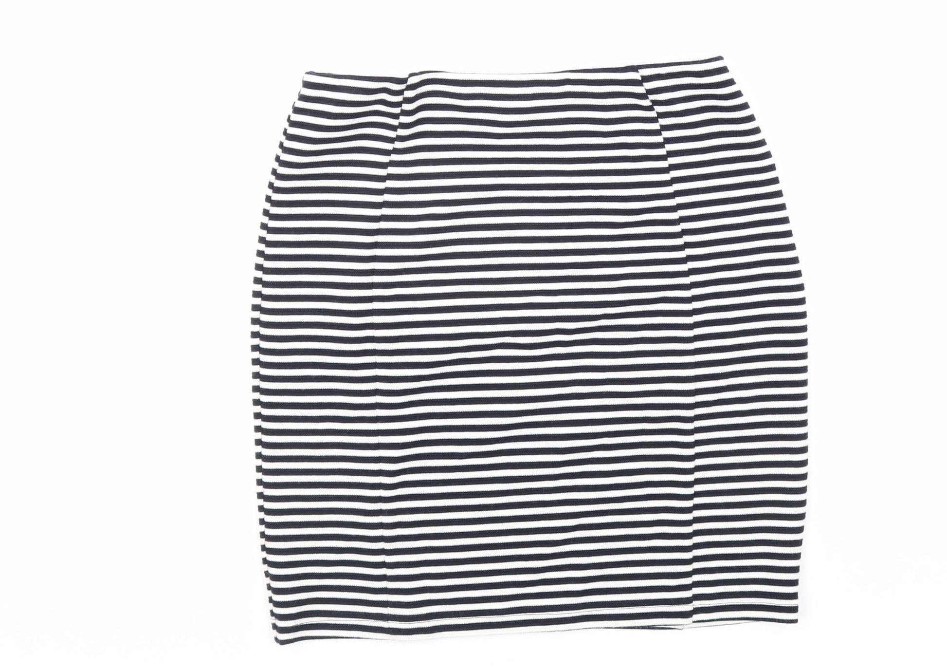 Papaya Womens Black Striped Polyester Straight & Pencil Skirt Size 10 Hook & Loop