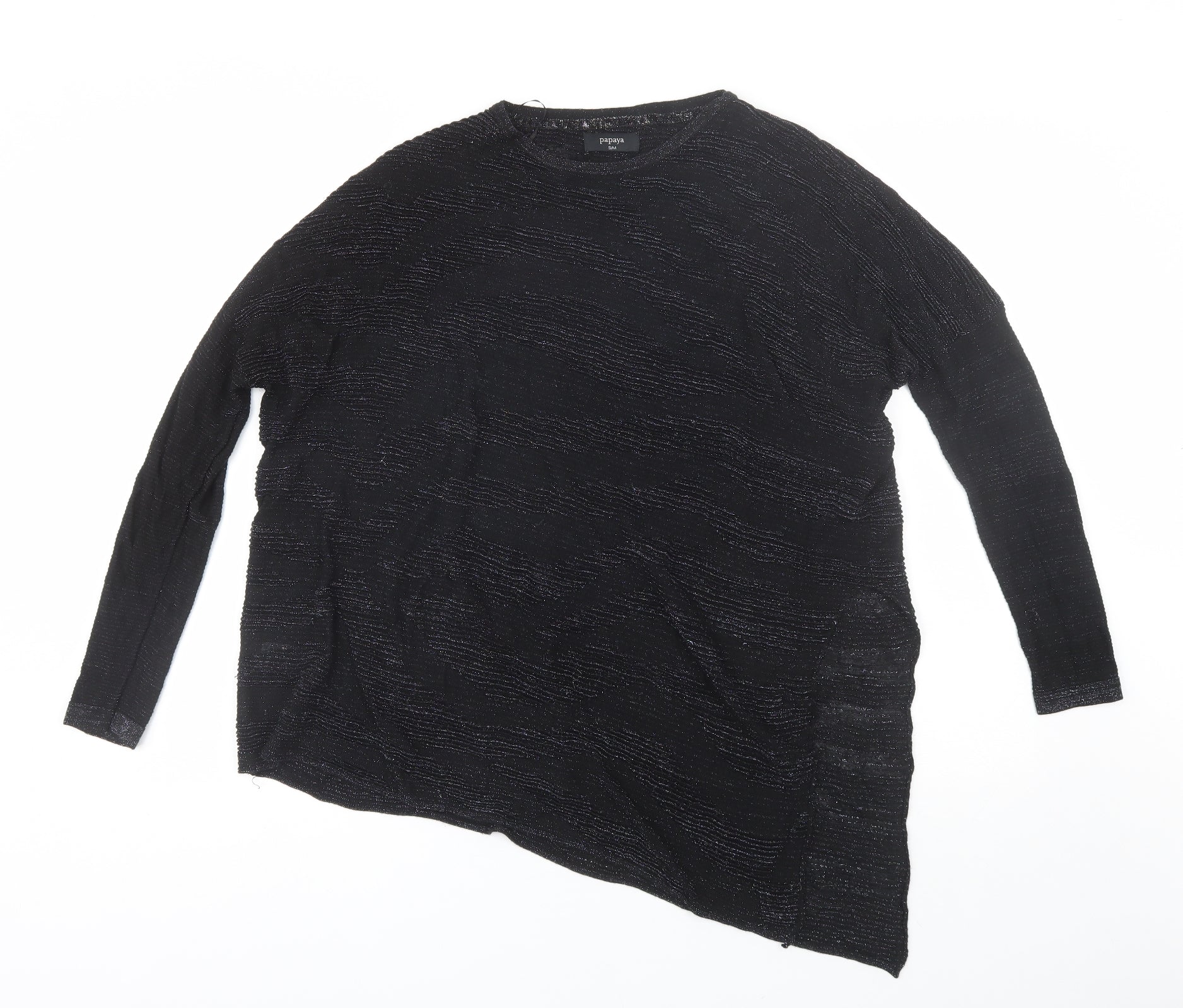 Papaya Womens Black Viscose Basic Blouse Size S Round Neck
