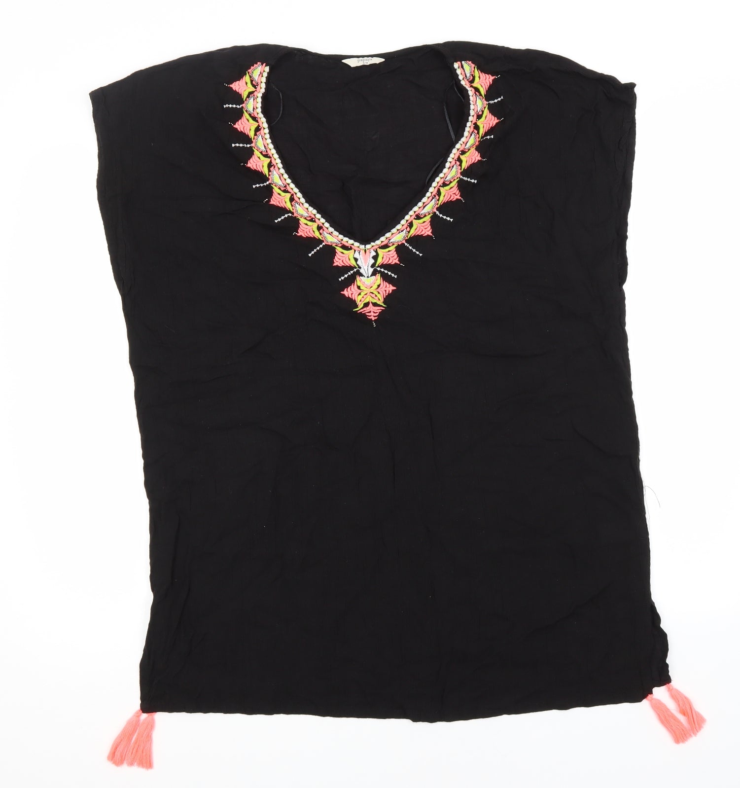 Papaya Womens Black Viscose Basic T-Shirt Size S V-Neck