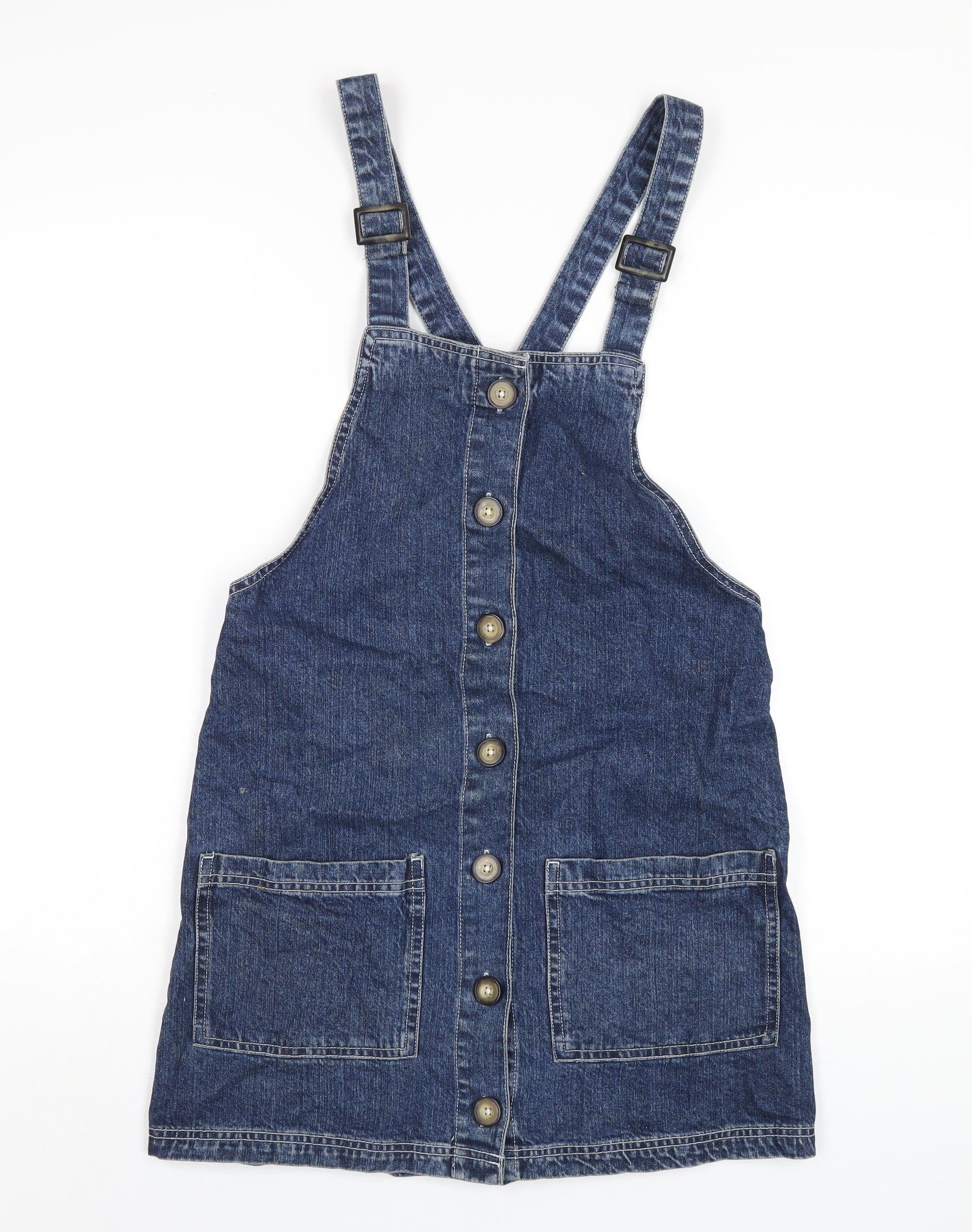 Papaya Womens Blue Cotton A-Line Size 10 Square Neck Button