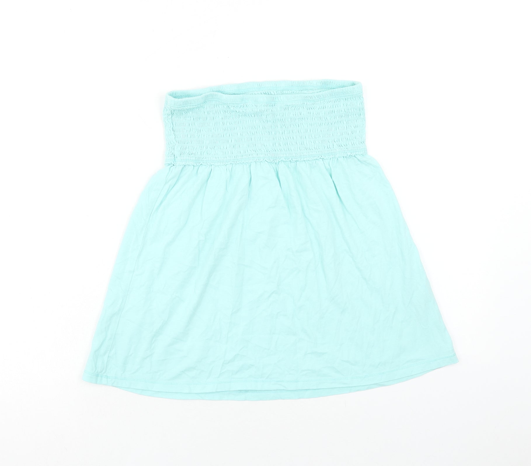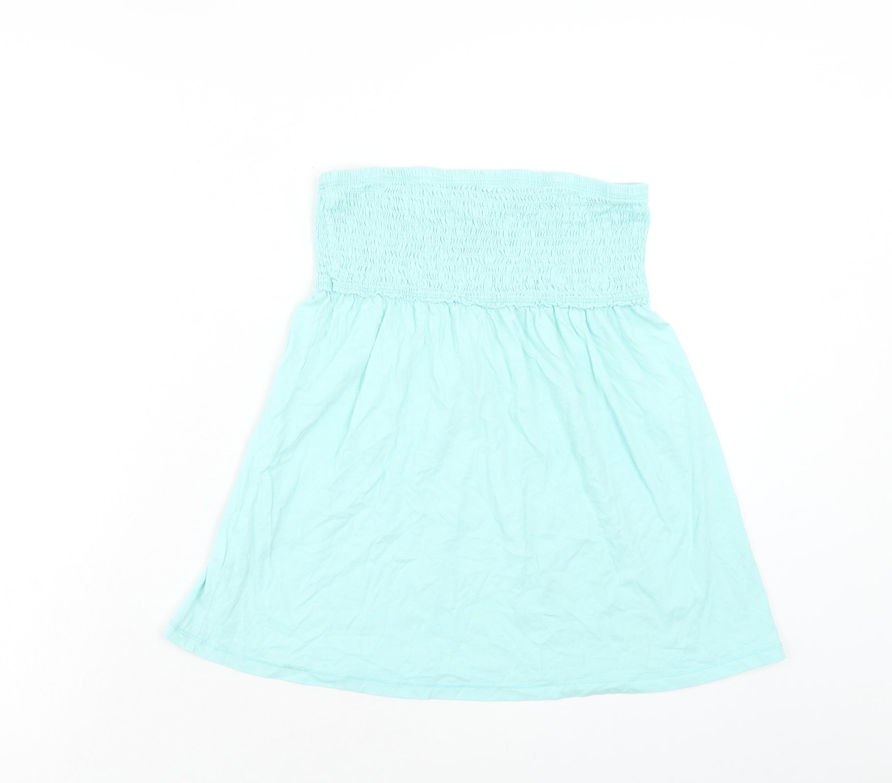 Papaya Womens Blue Cotton Basic Blouse Size 12 Off the Shoulder - Shirred Bandeau
