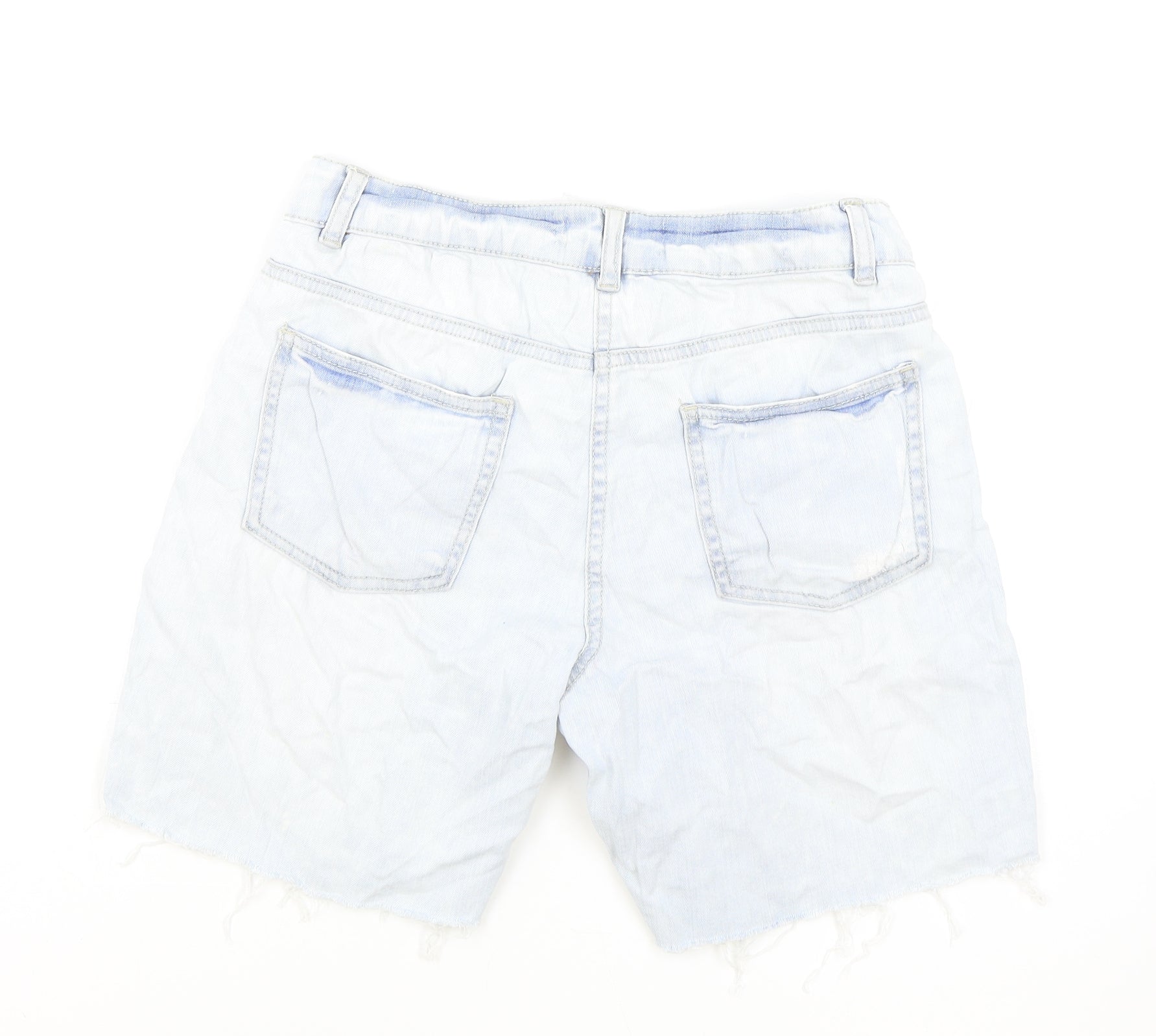Papaya Womens Blue Cotton Boyfriend Shorts Size 8 L7 in Regular Zip