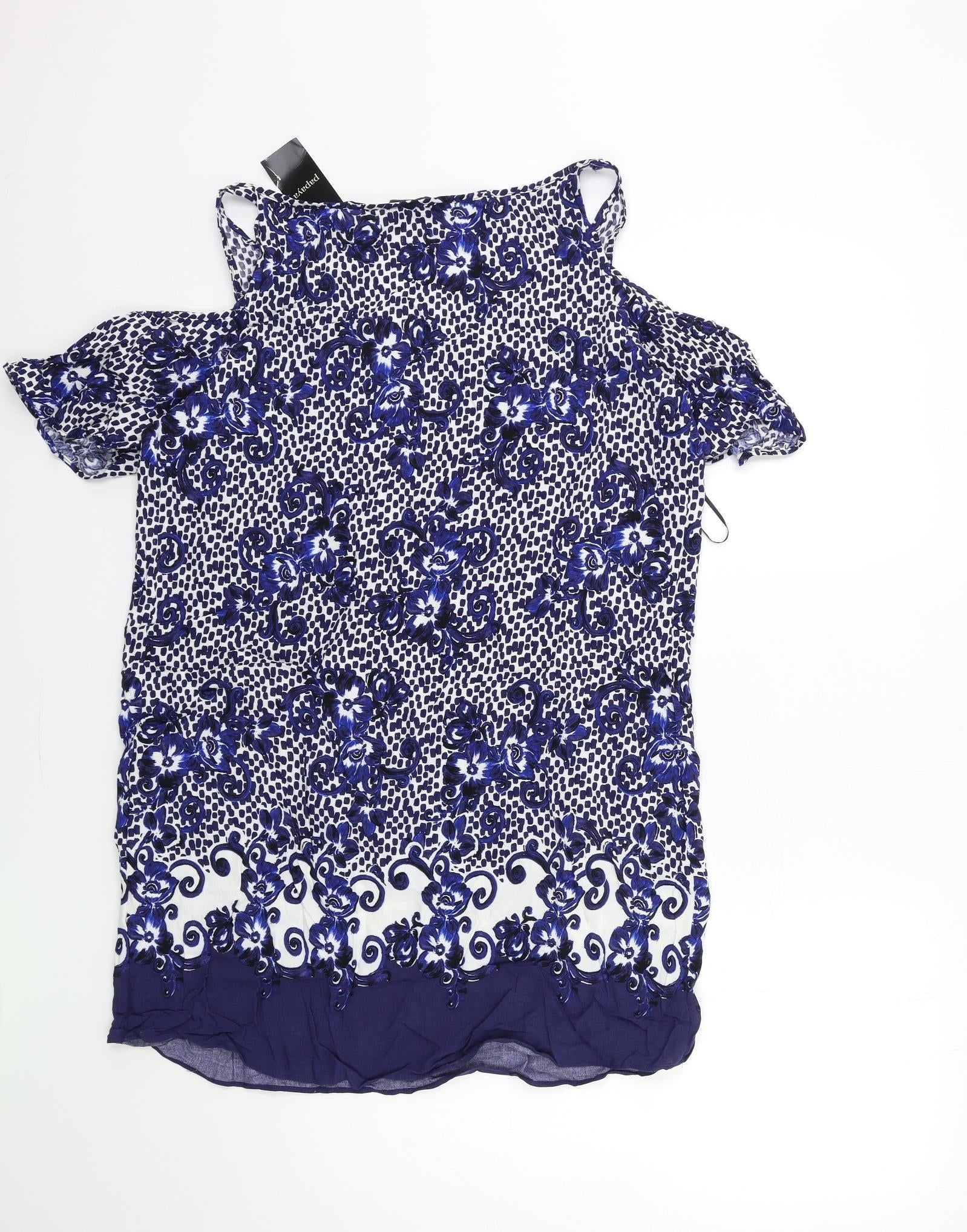 Papaya Womens Blue Floral Basic Blouse Size 12