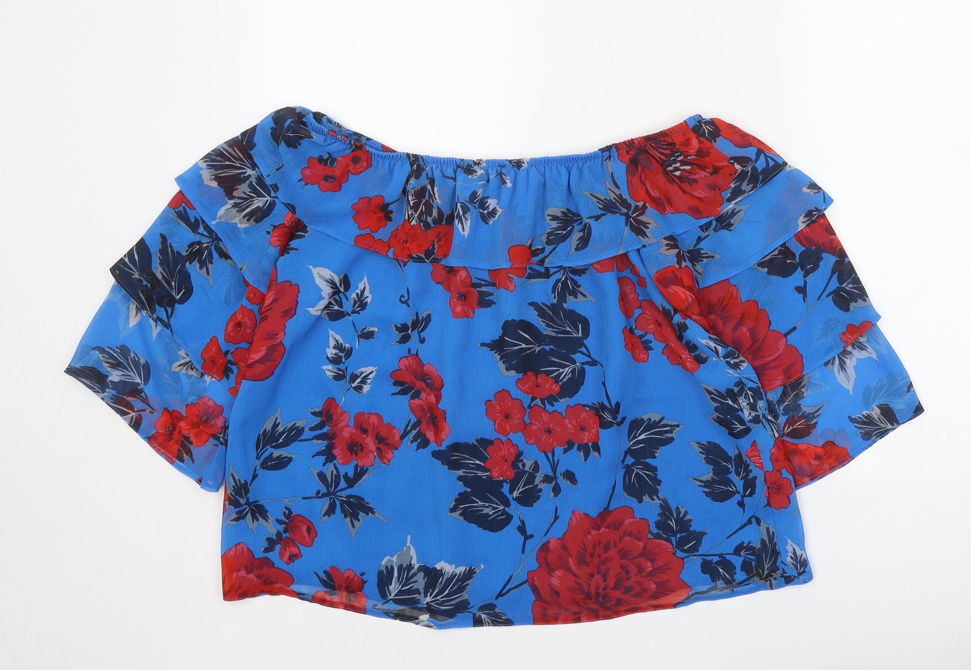 Papaya Womens Blue Floral Polyester Basic Blouse Size 12 Off the Shoulder