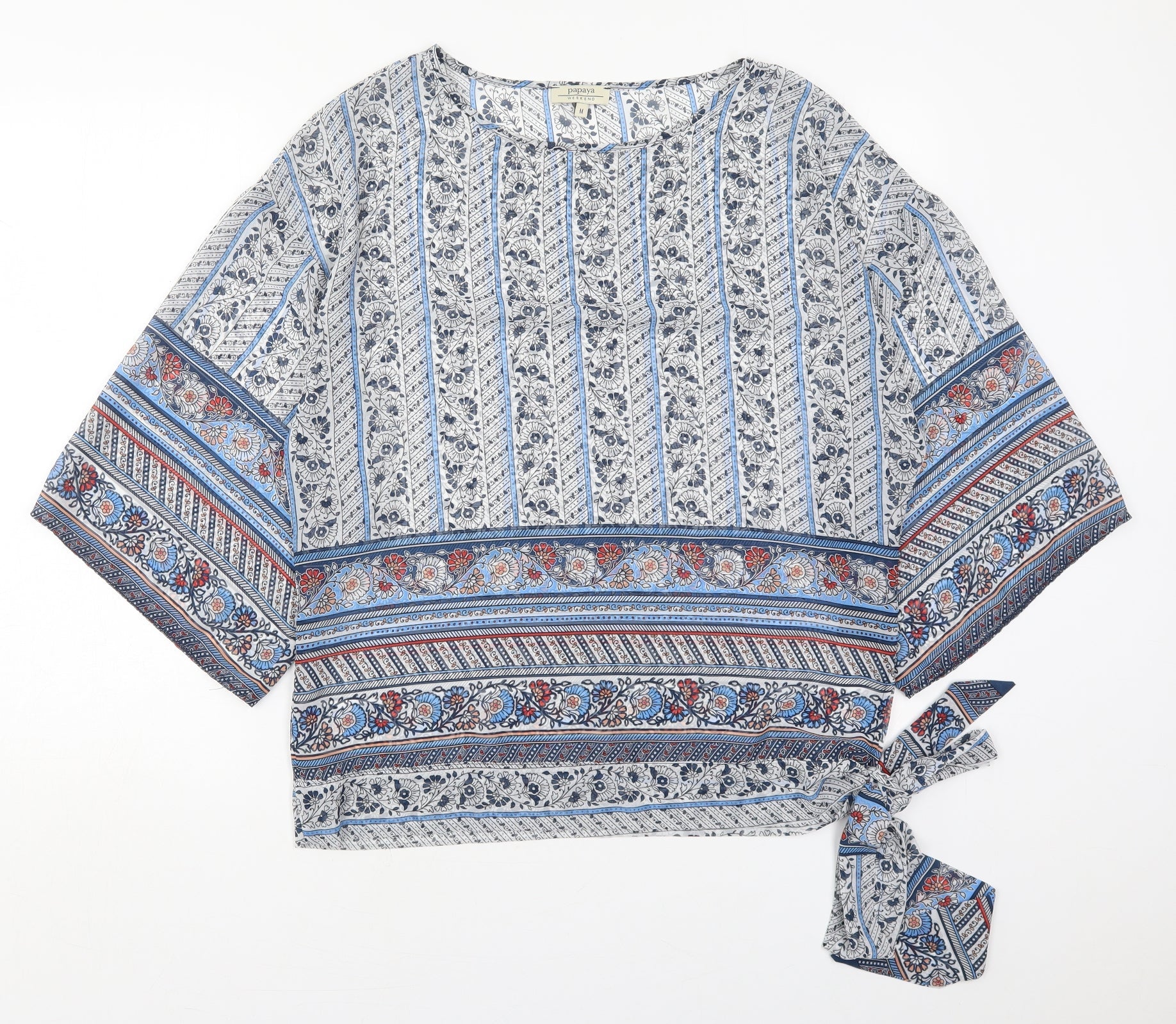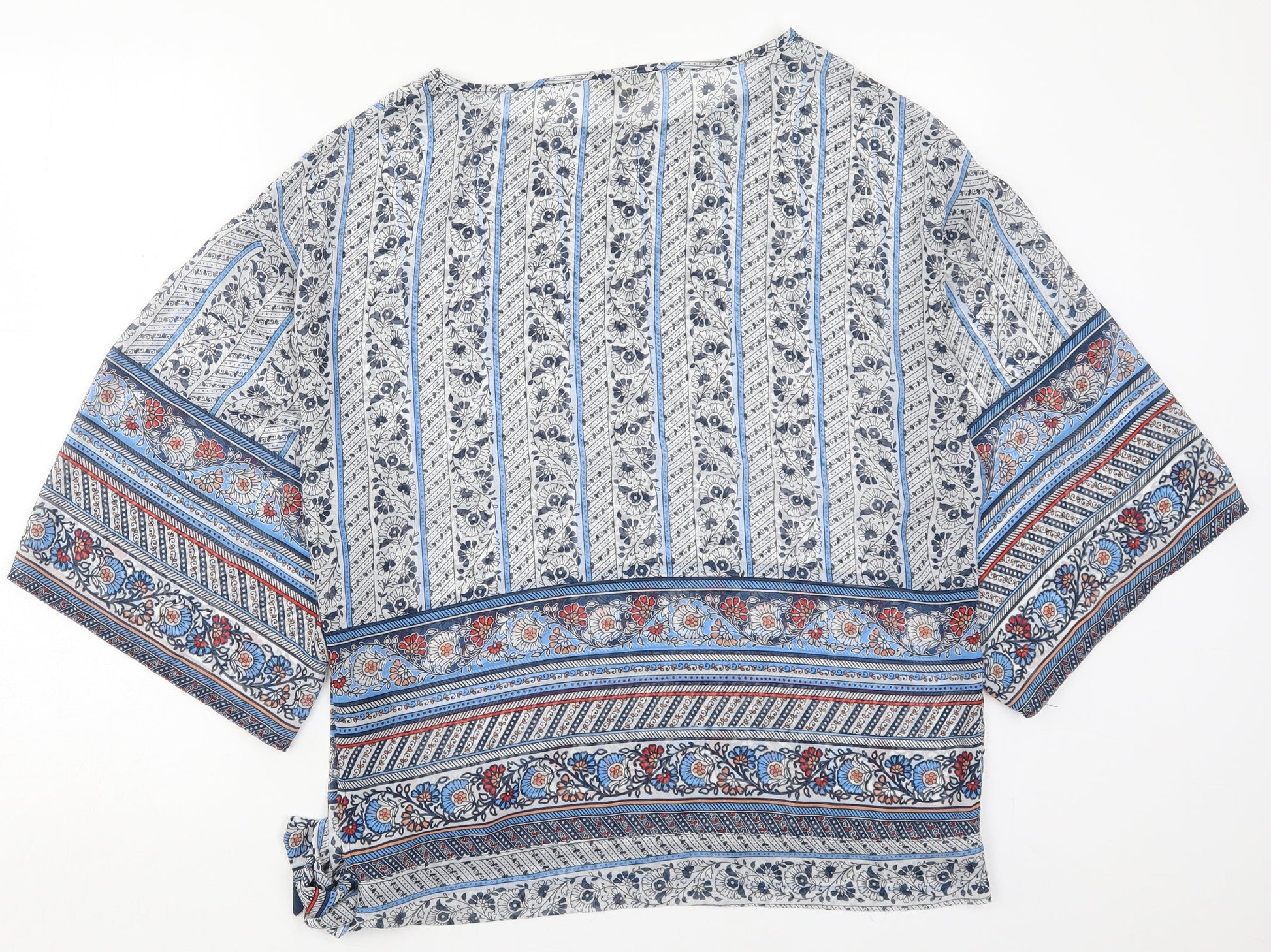 Papaya Womens Blue Floral Polyester Basic Blouse Size M Round Neck