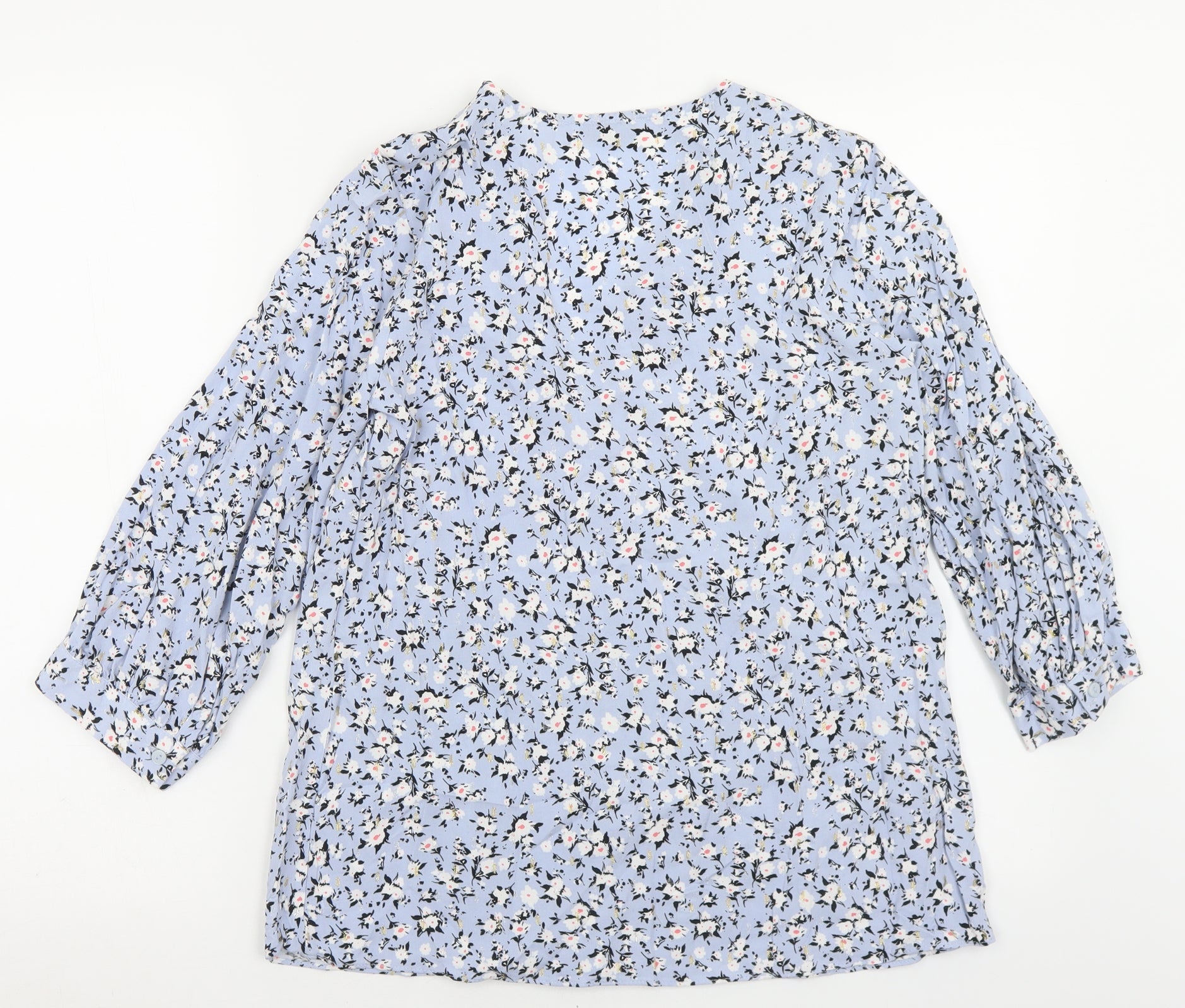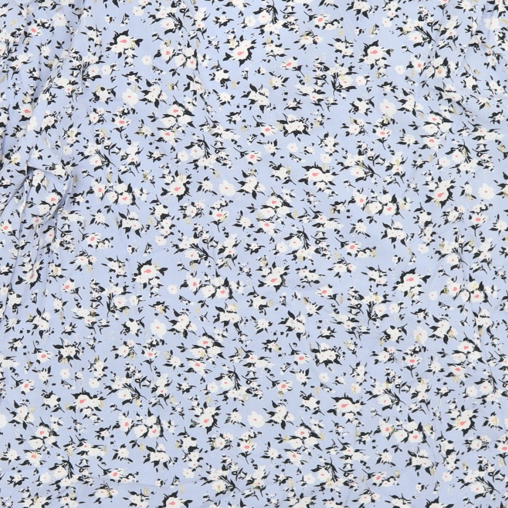 Papaya Womens Blue Floral Viscose Basic Blouse Size 8 V-Neck