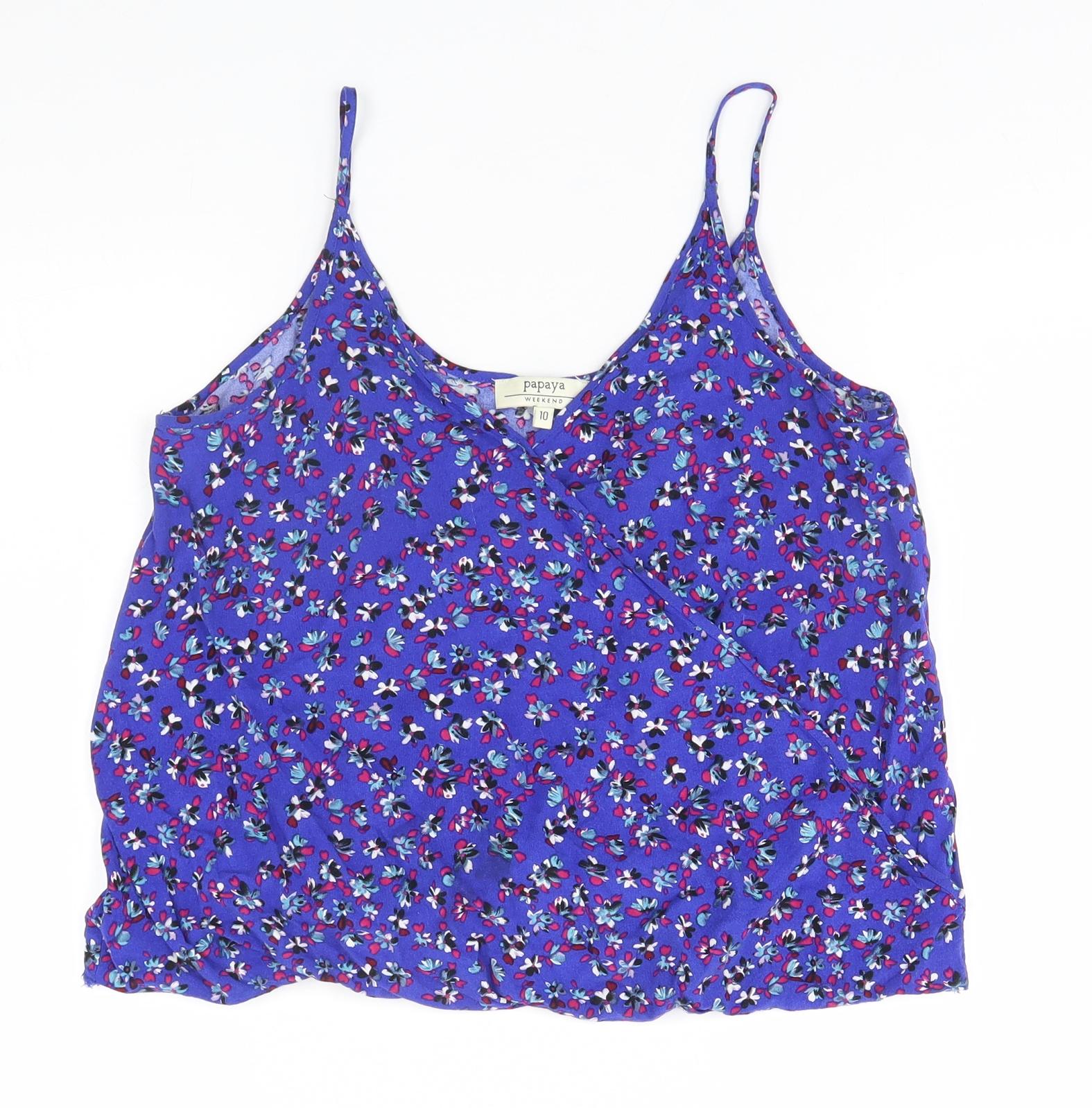 Papaya Womens Blue Floral Viscose Basic Tank Size 10 Halter