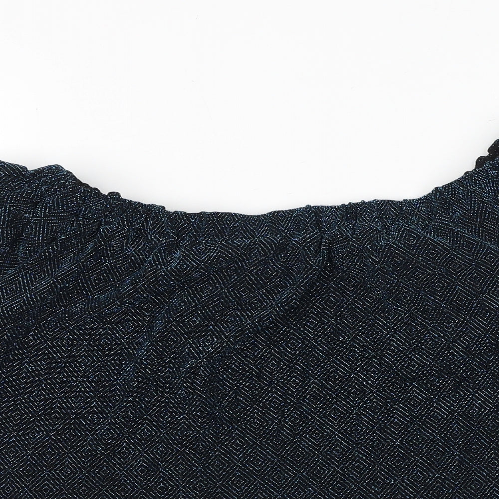 Papaya Womens Blue Geometric Polyamide Basic Blouse Size 10 Off the Shoulder