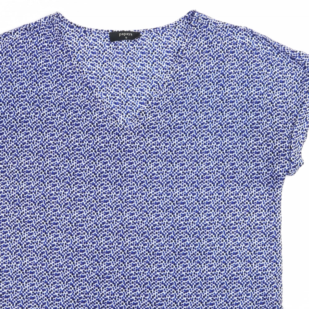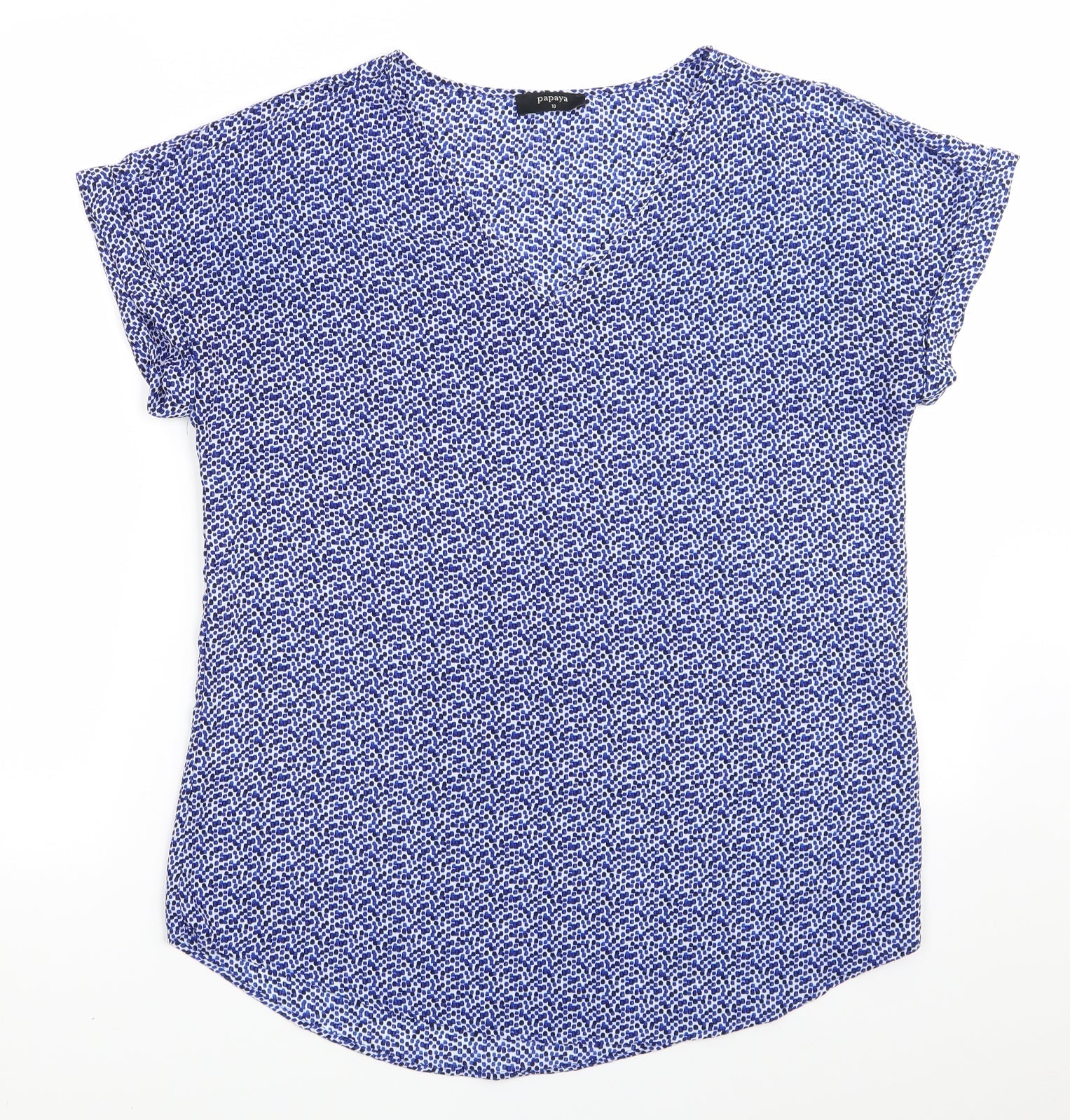 Papaya Womens Blue Geometric Polyester Basic Blouse Size 10 V-Neck - Small square blue mix pattern