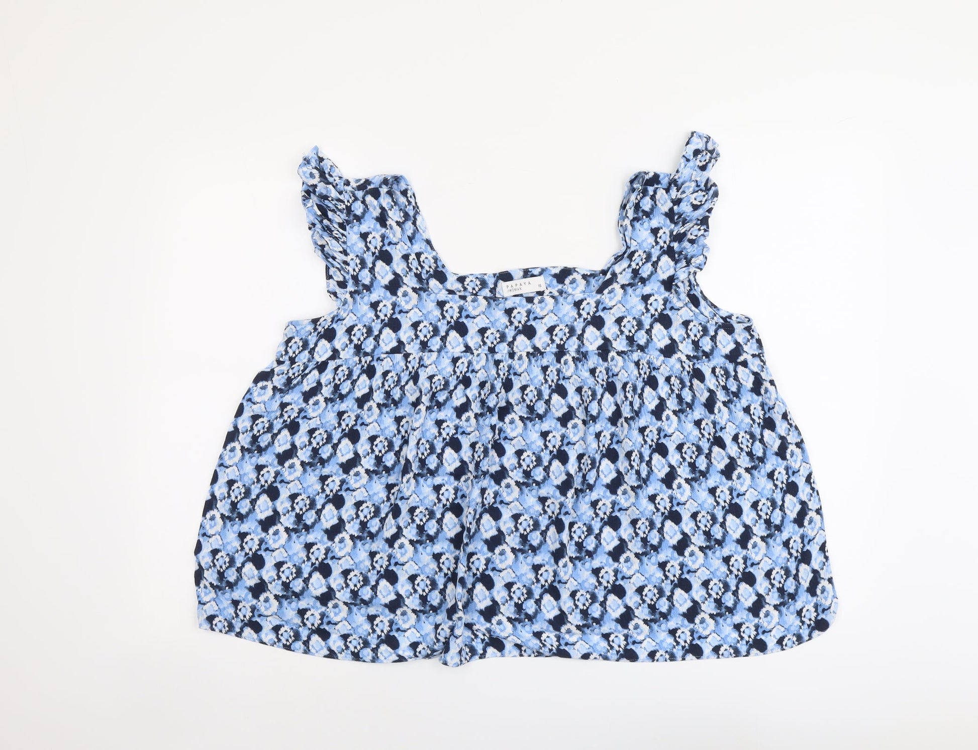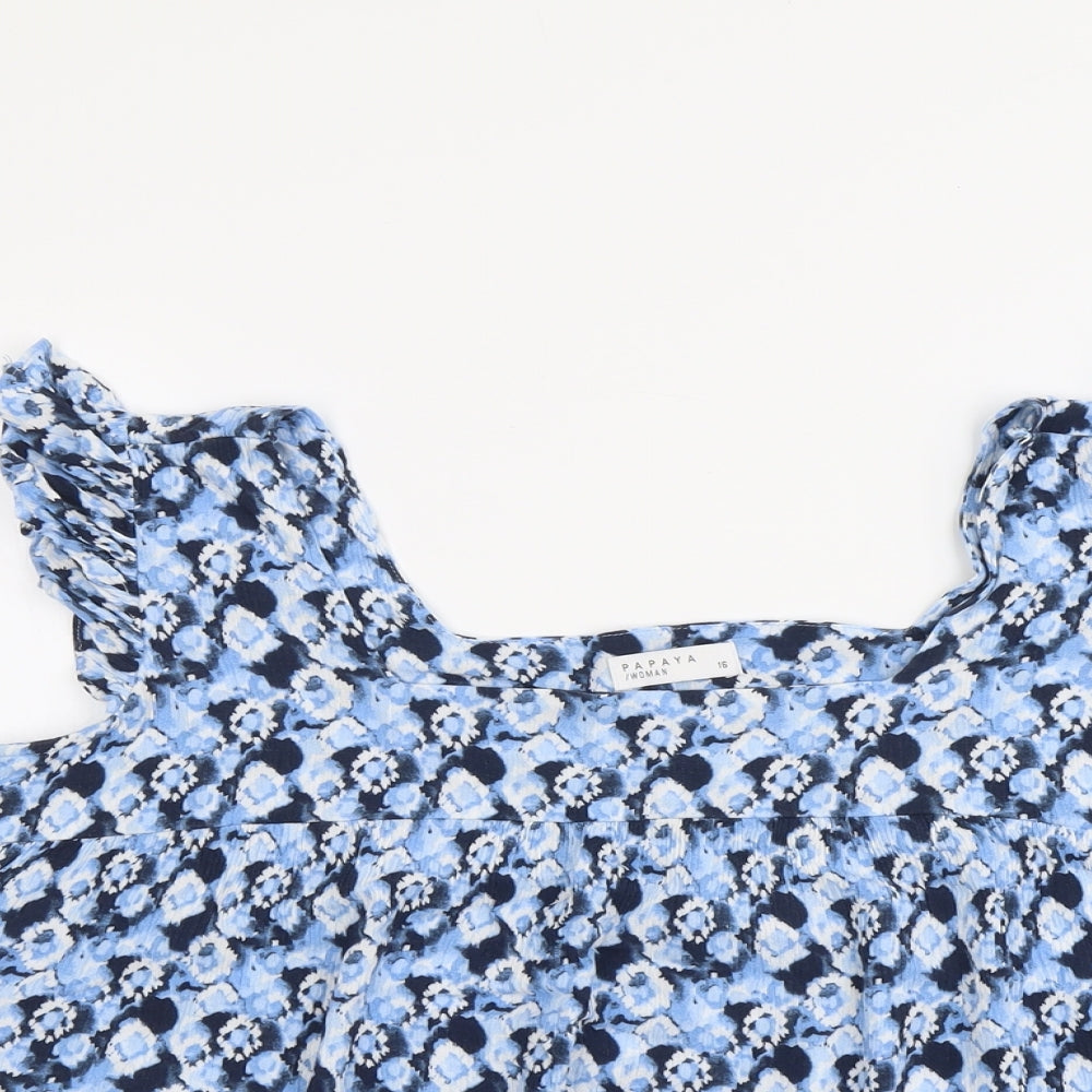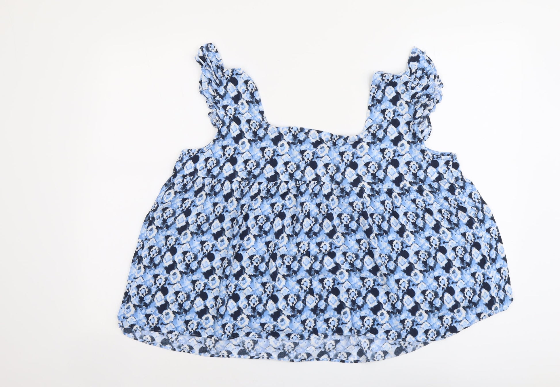 Papaya Womens Blue Geometric Polyester Cropped Tank Size 16 Square Neck