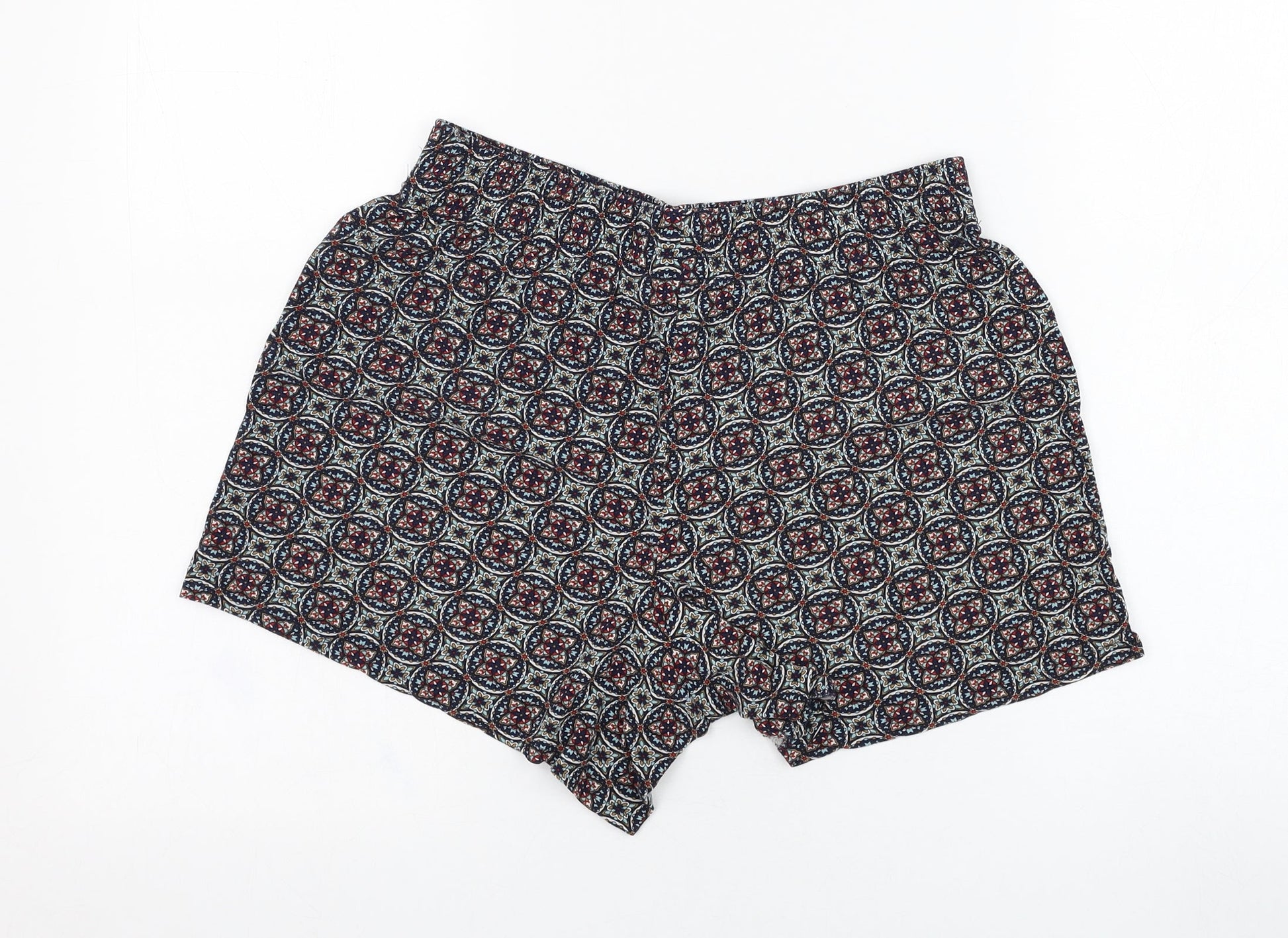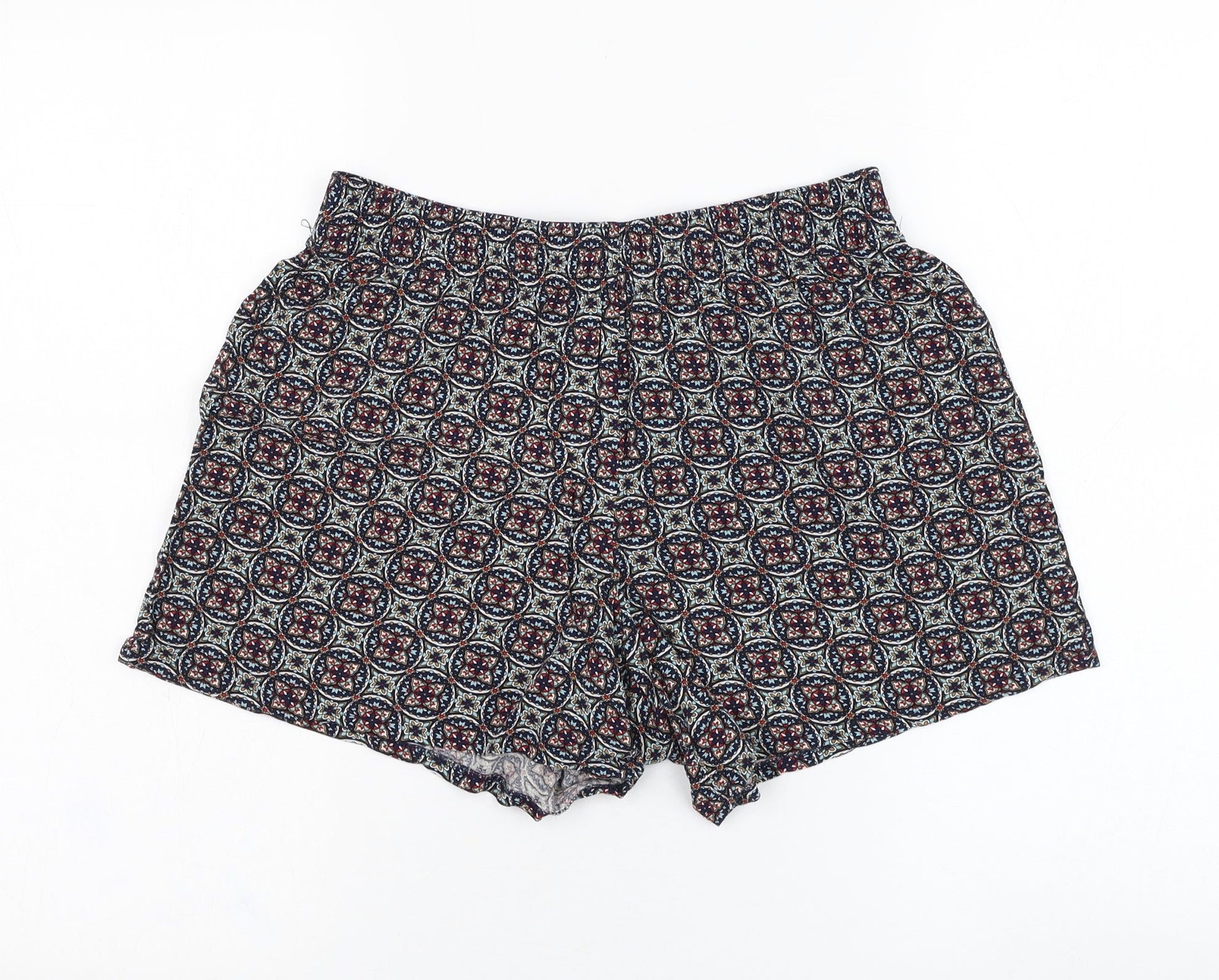 Papaya Womens Blue Geometric Viscose Culotte Shorts Size 8 L4 in Regular